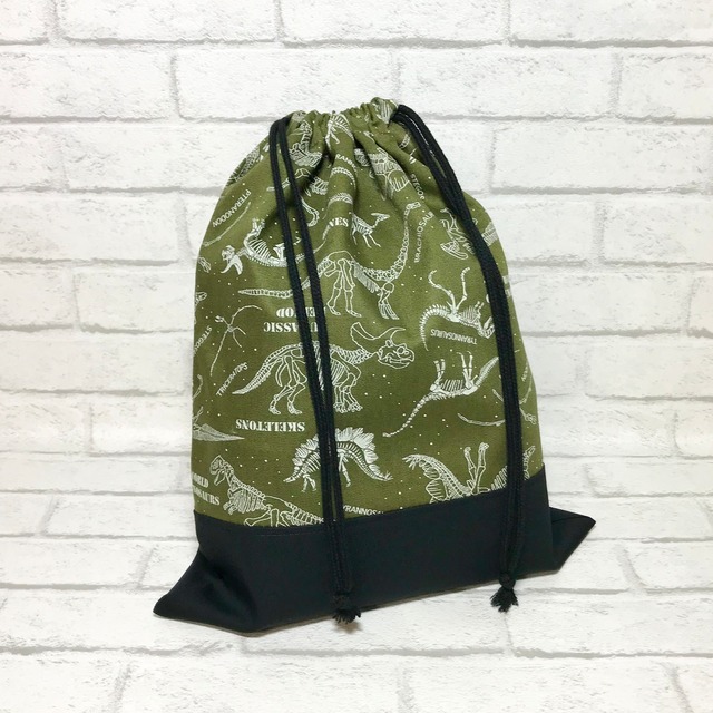恐竜(ベージュ)×黒 体操着袋38×30cm