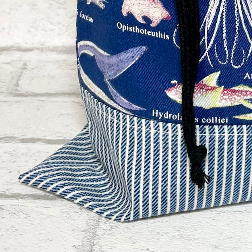深海魚(ネイビー)×ストライプ 入園入学グッズ5点セット/裏地キルティング