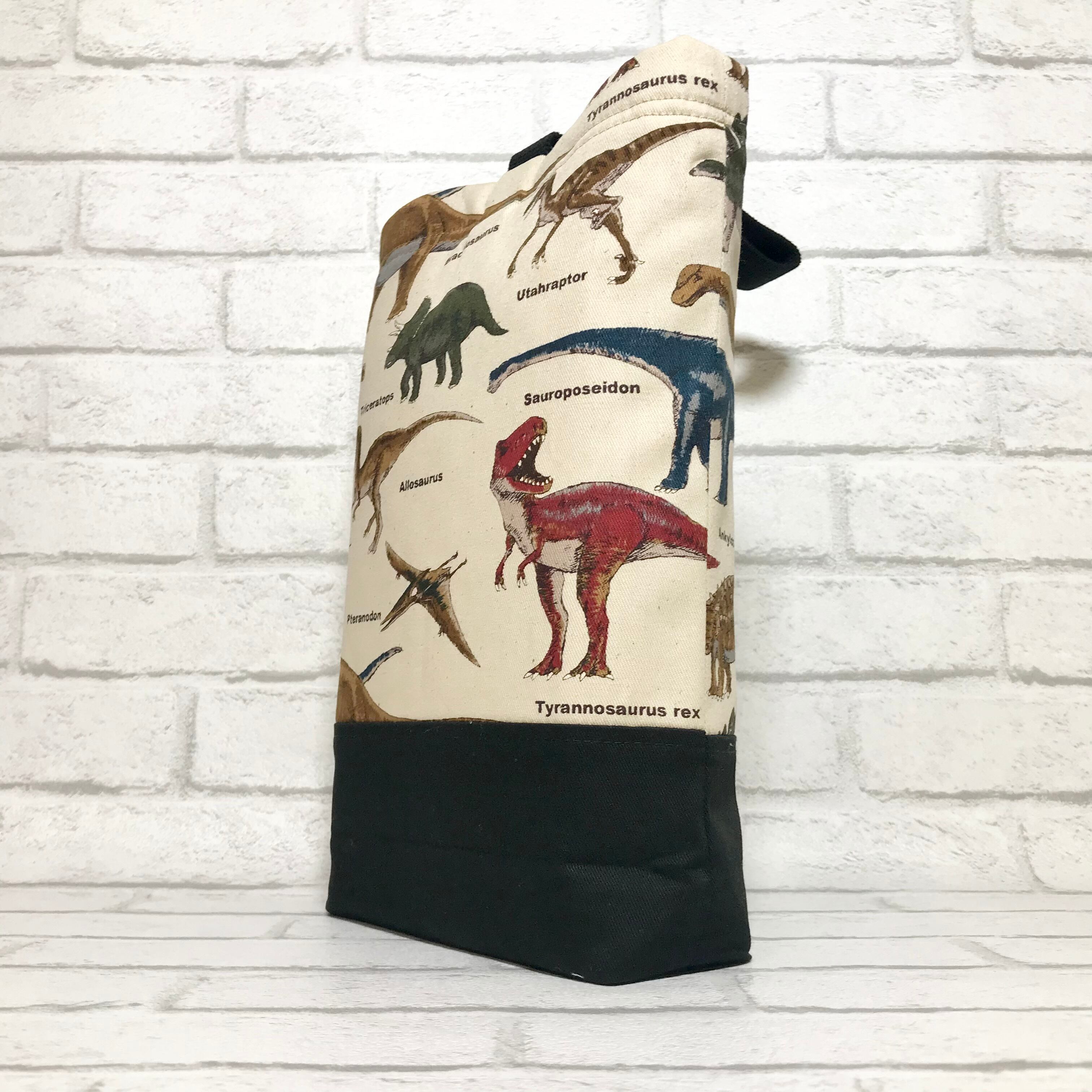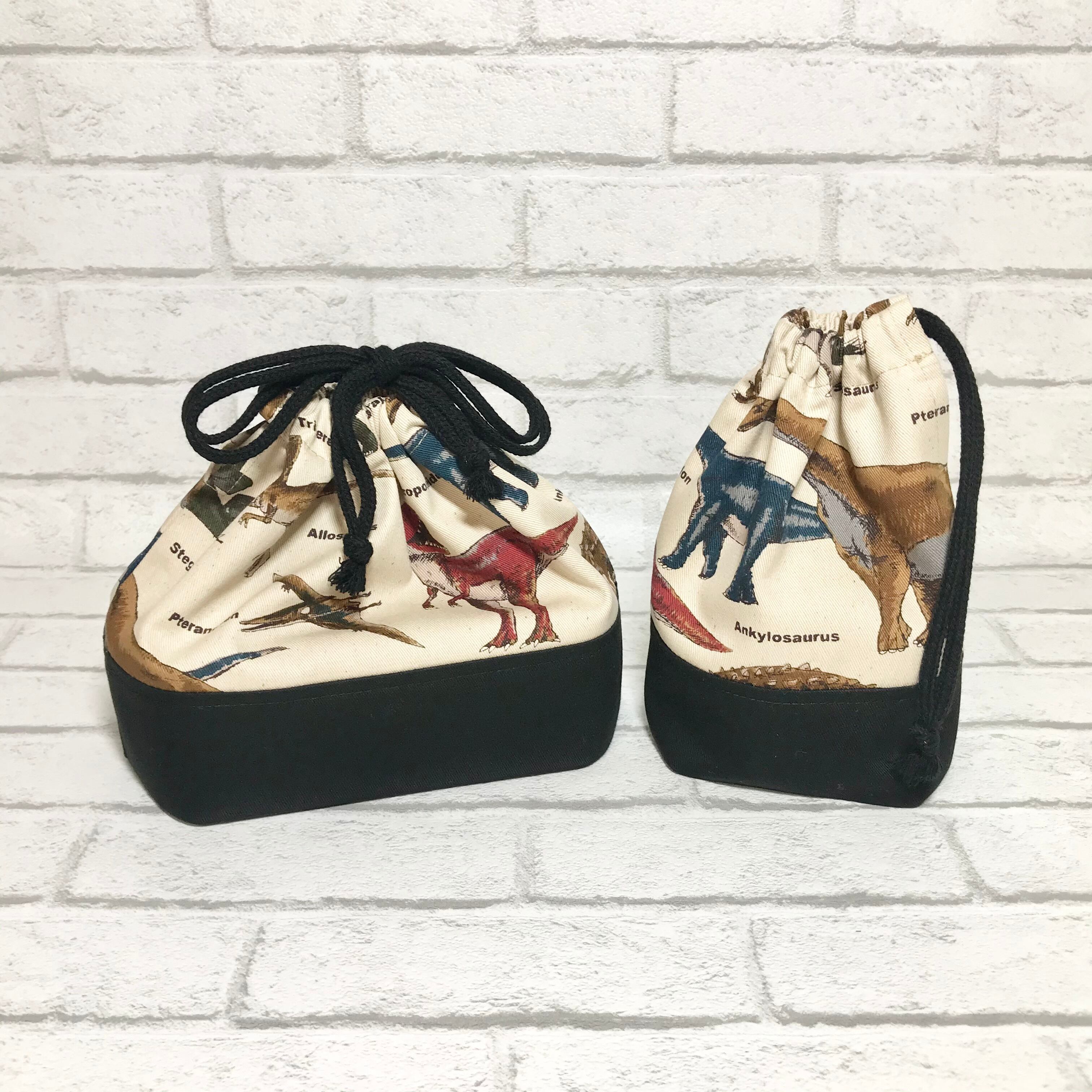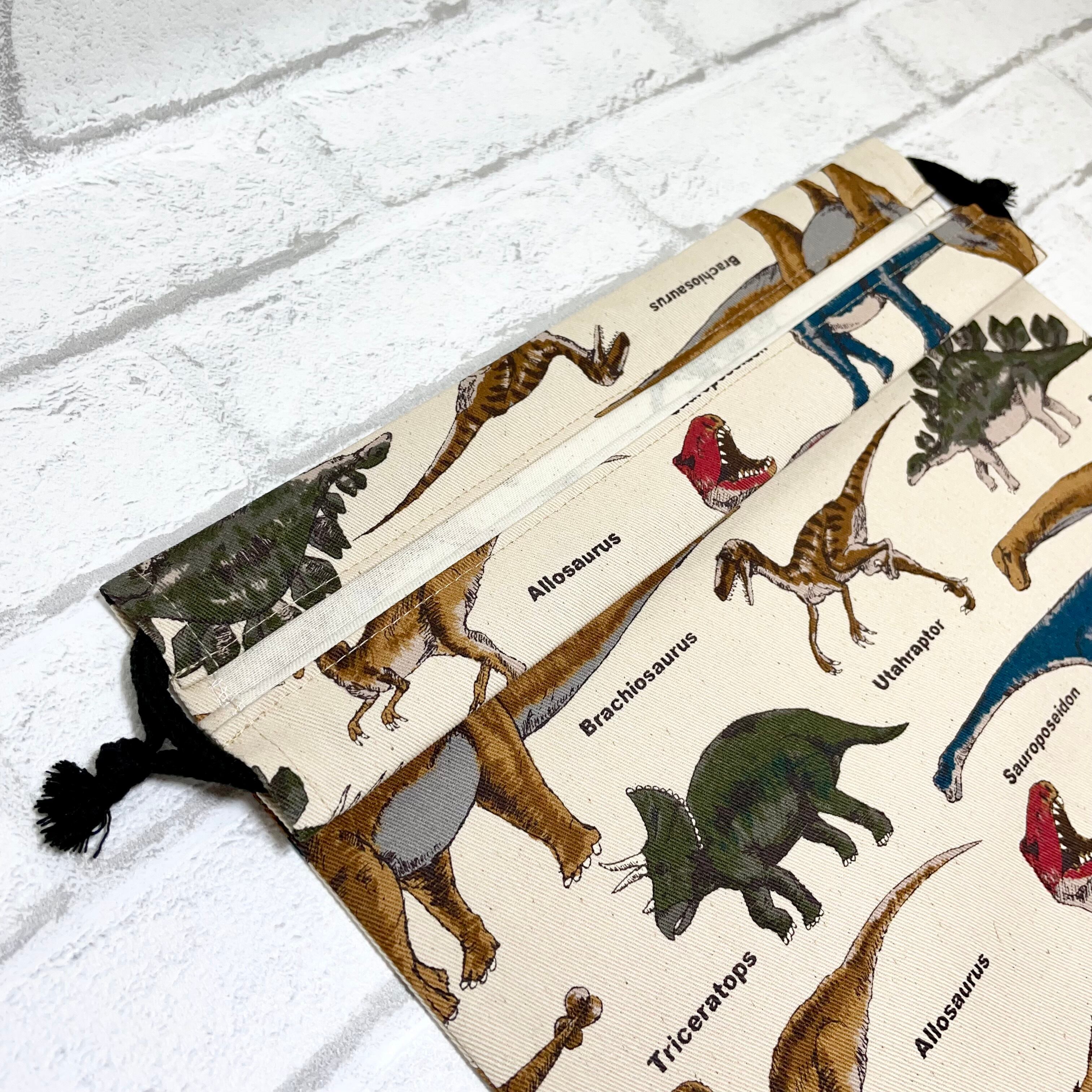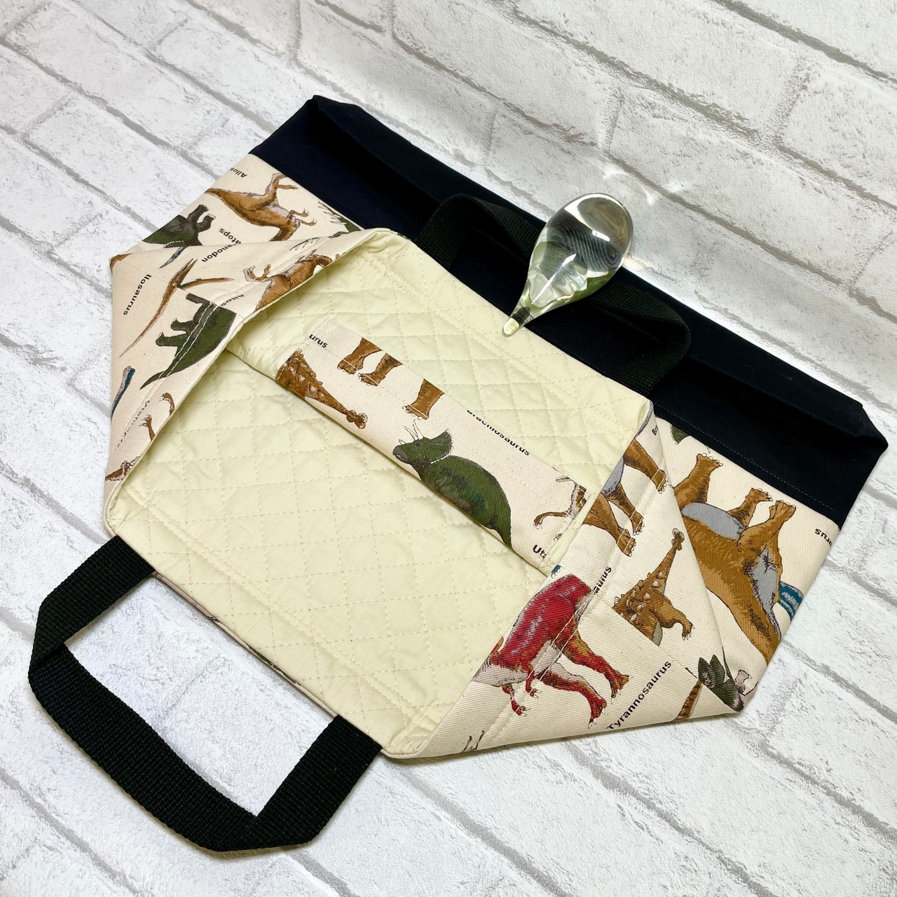 恐竜(ベージュ)×黒 入園入学グッズ5点セット/裏地キルティング