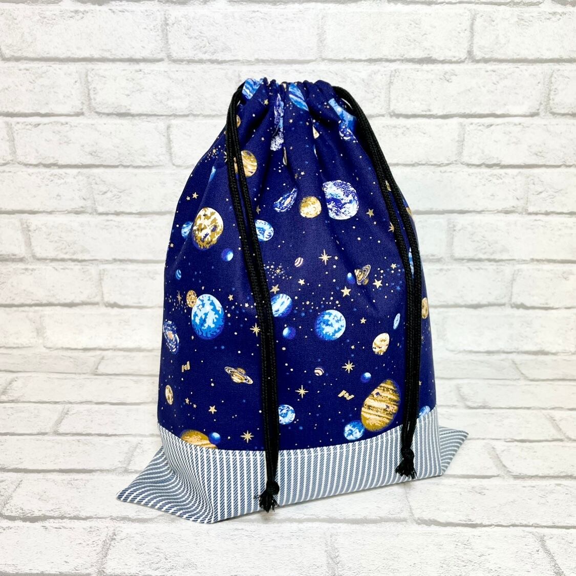 惑星(ブラウン)×ストライプ 入園入学グッズ5点セット/裏地キルティング