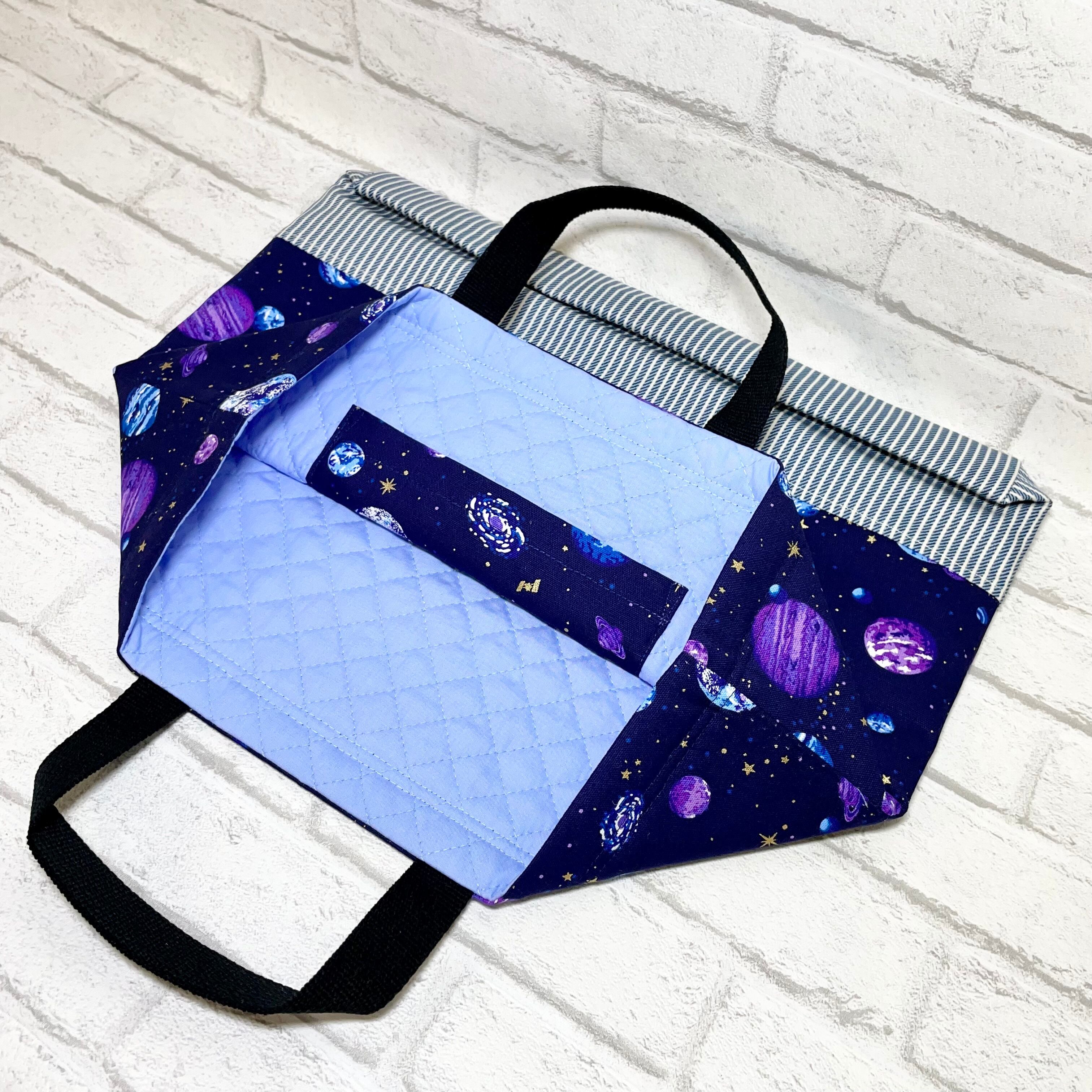 惑星(パープル)×ストライプ 入園入学グッズ5点セット/裏地キルティング