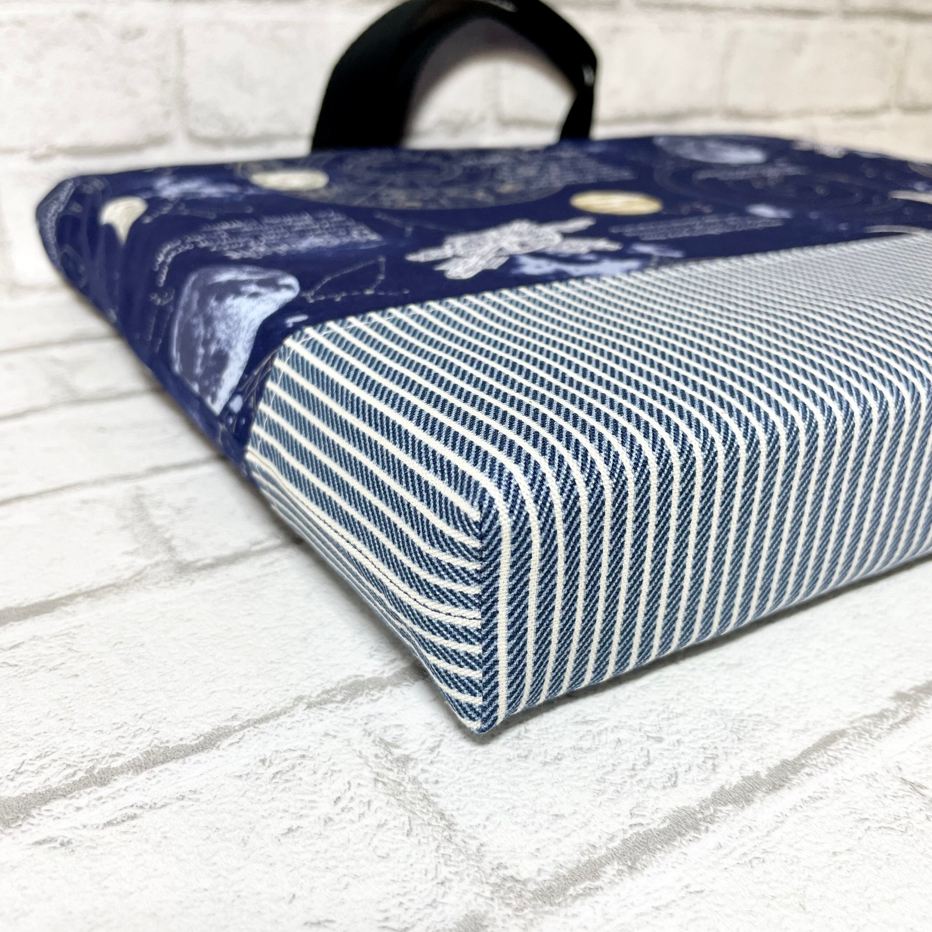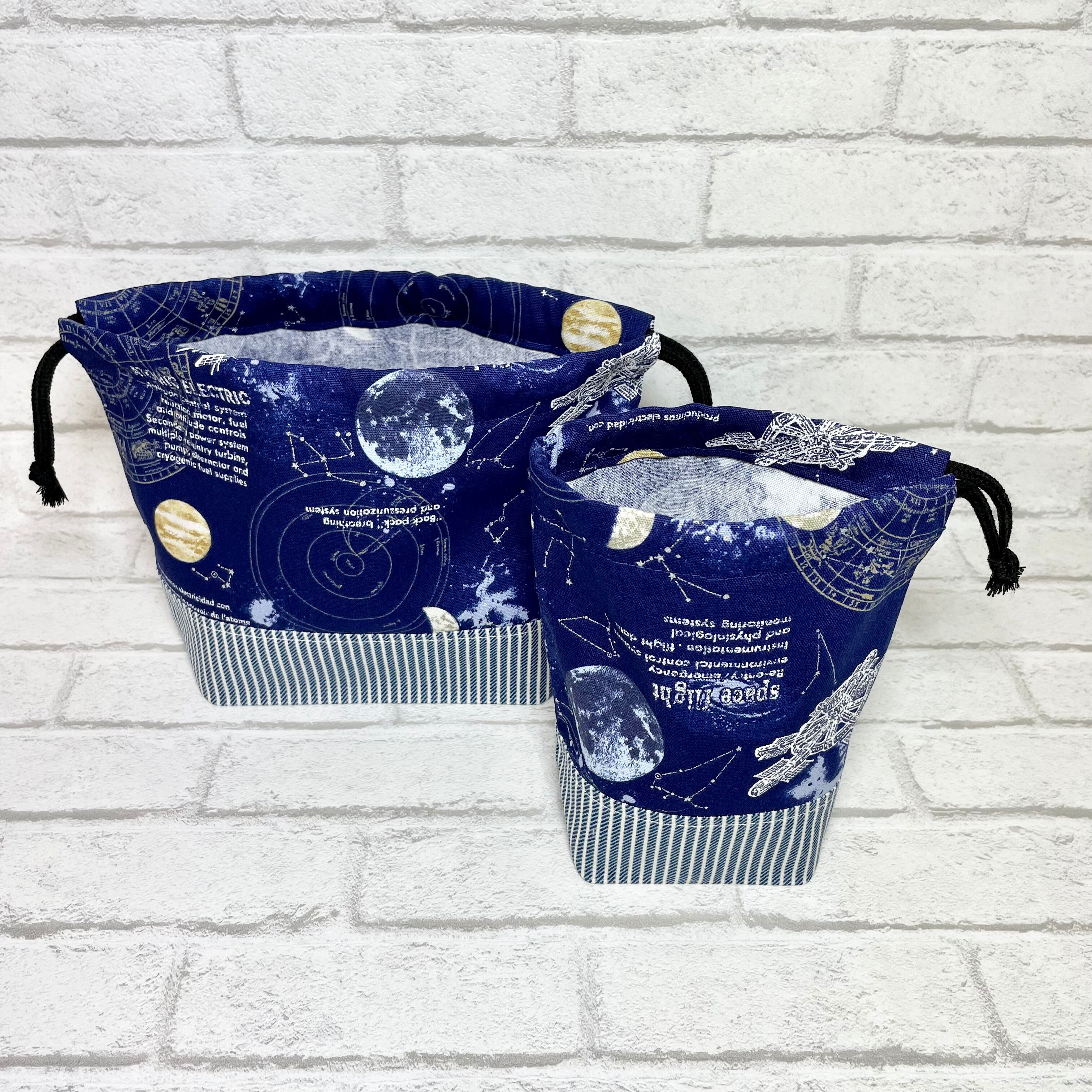 宇宙(ネイビー)×ストライプ 入園入学グッズ5点セット/裏地キルティング