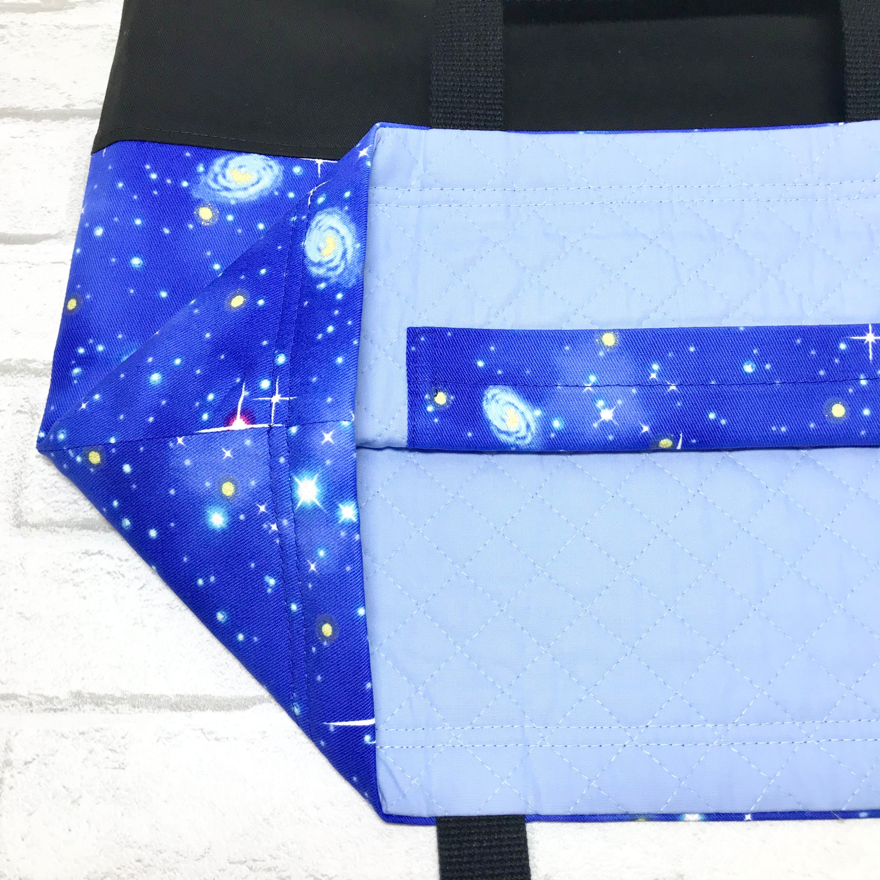 天体(ブルー)×黒 入園入学グッズ5点セット/裏地キルティング