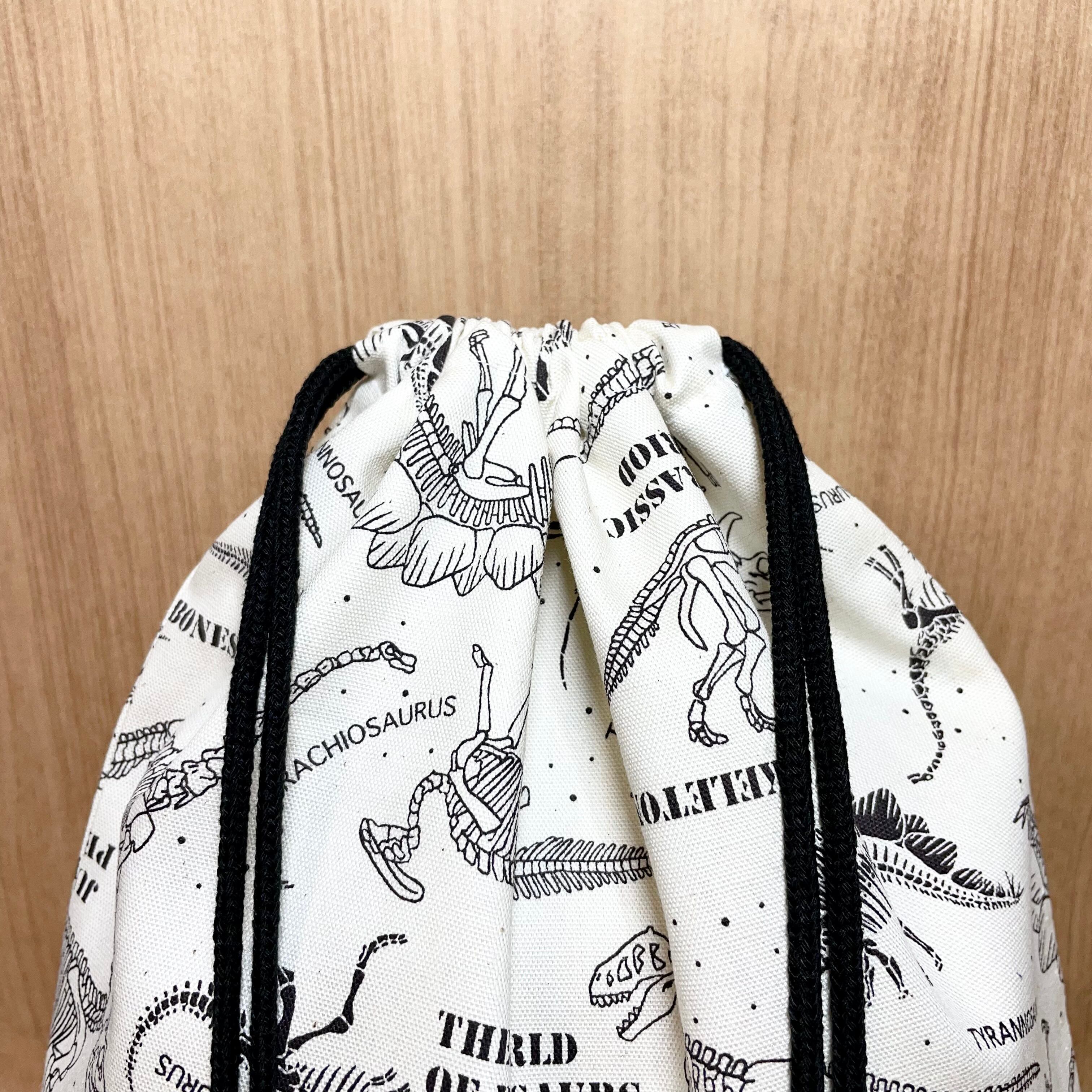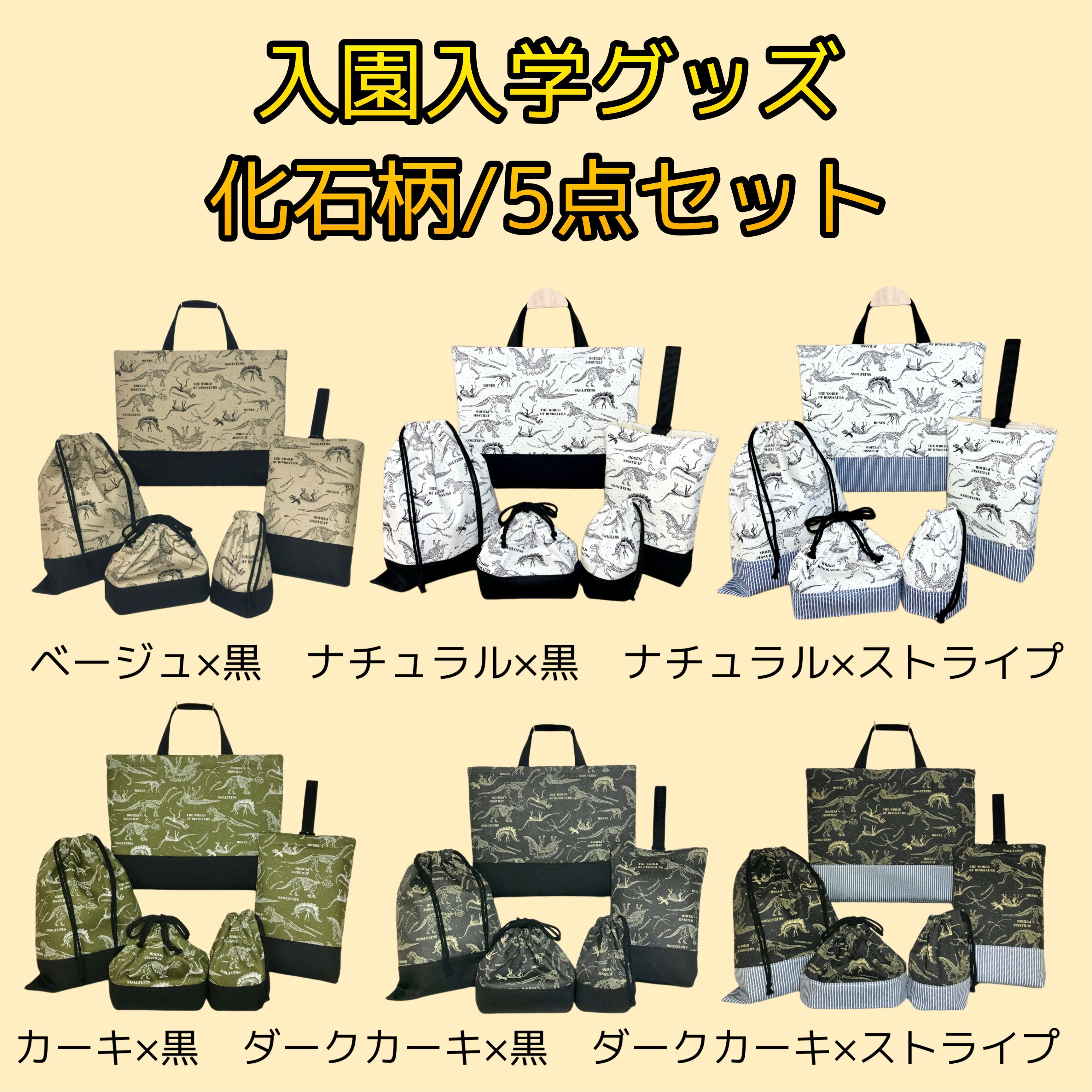 化石(ナチュラル)×黒 入園入学グッズ5点セット/裏地キルティング