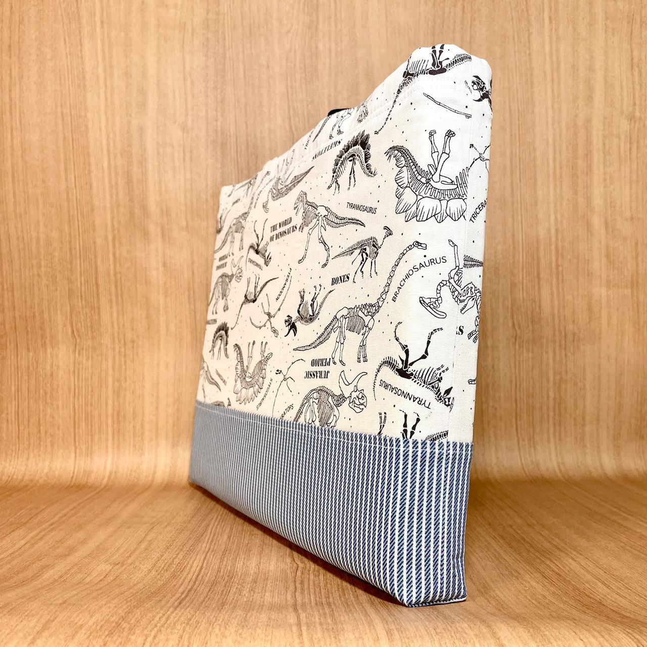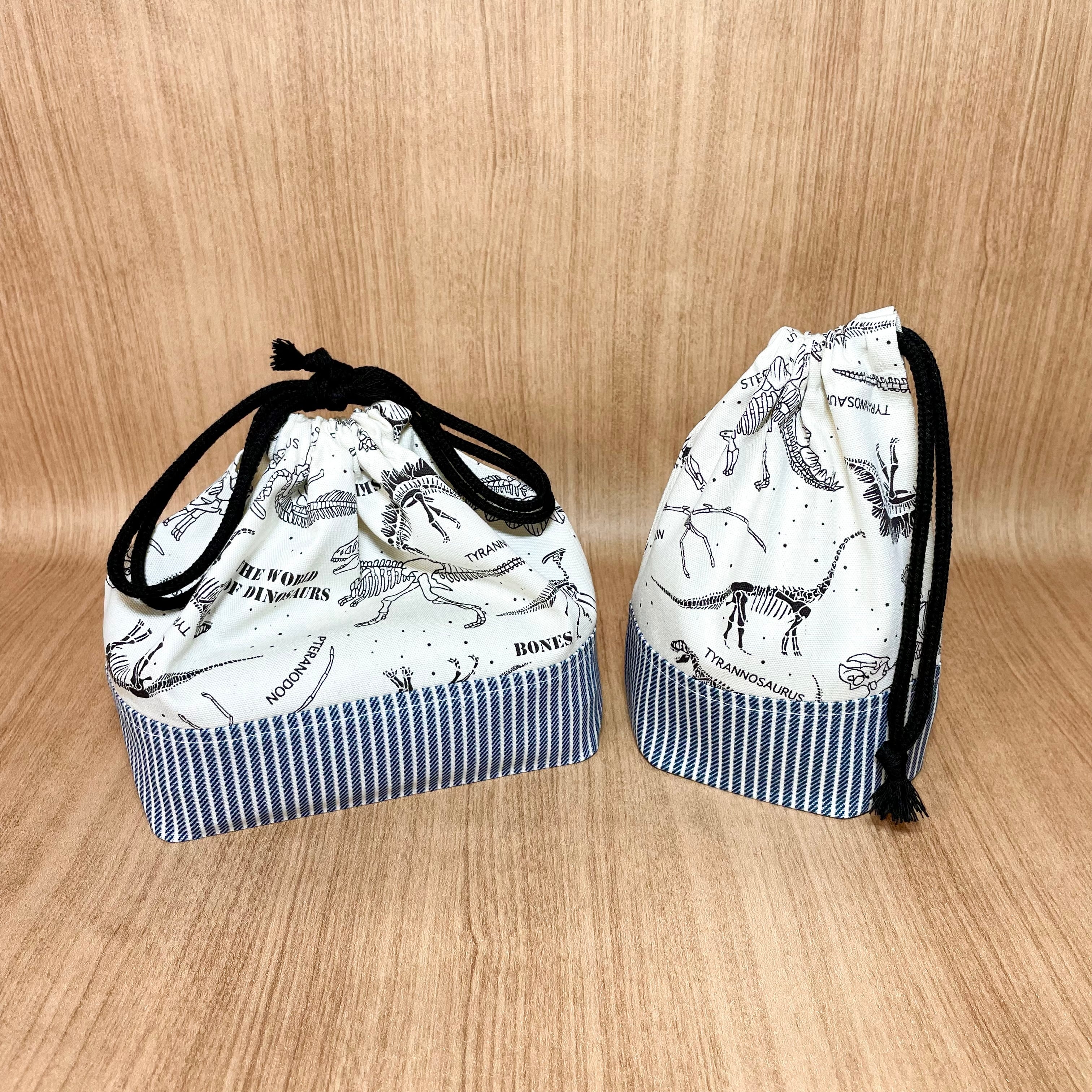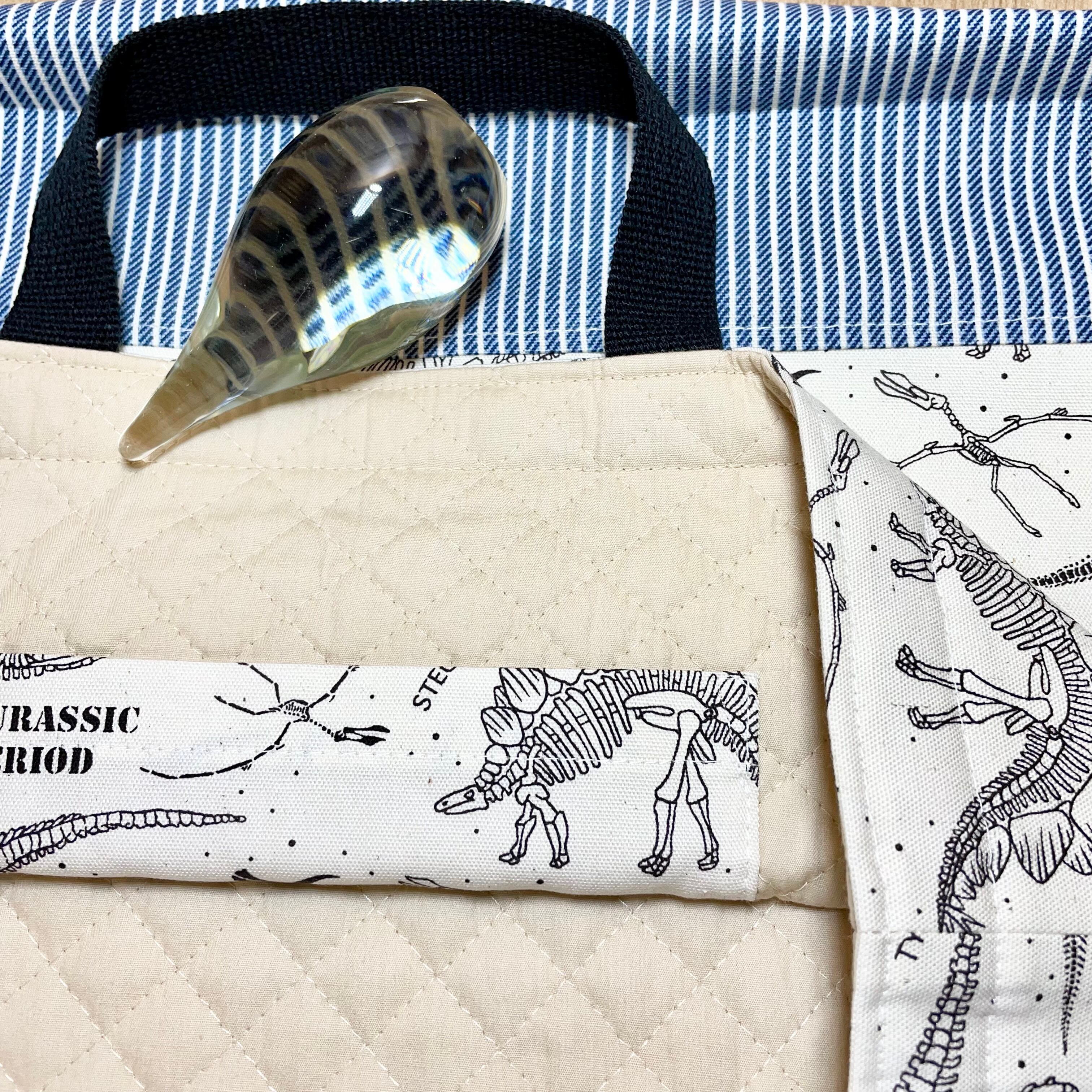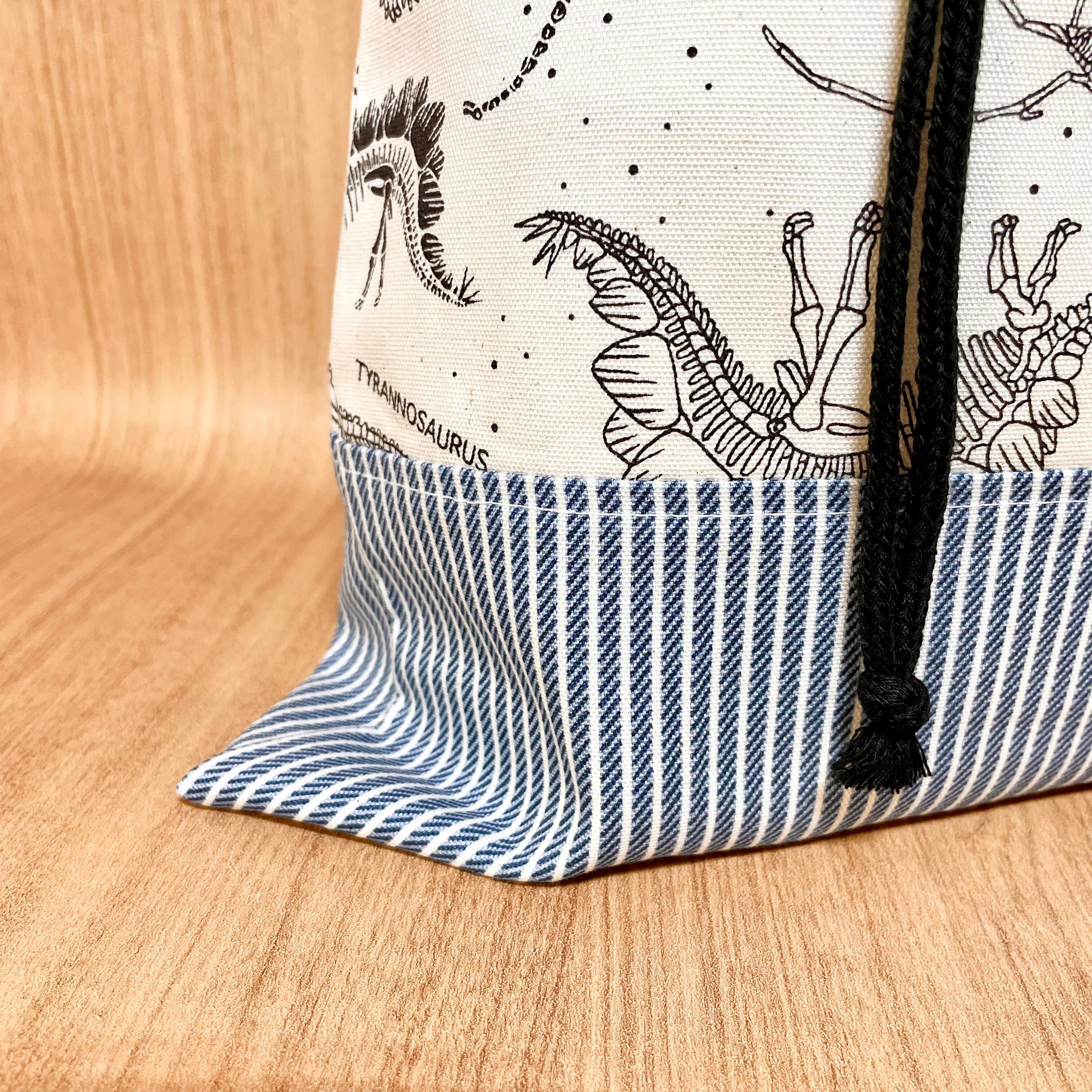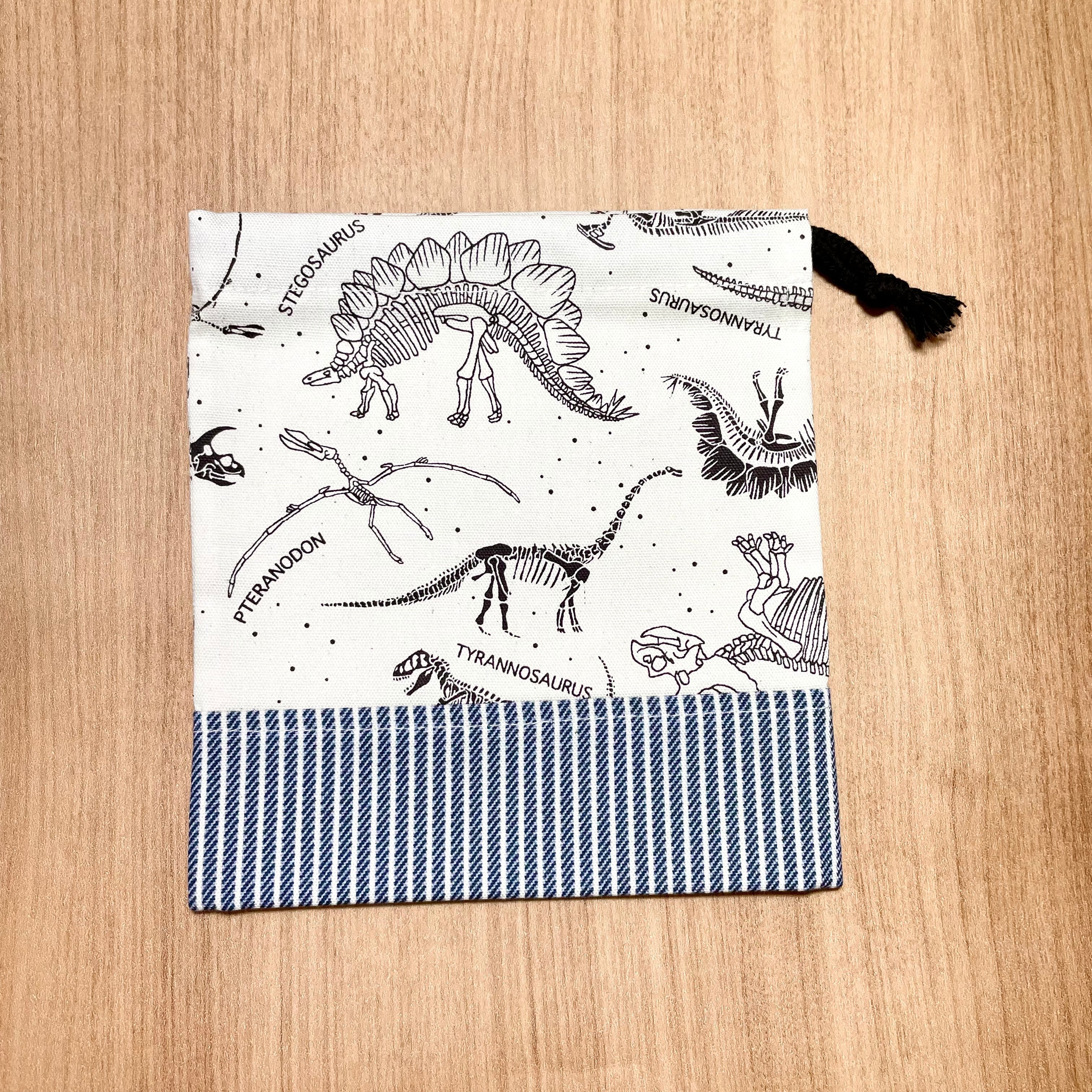 化石(ナチュラル)×ストライプ 入園入学グッズ5点セット/裏地キルティング