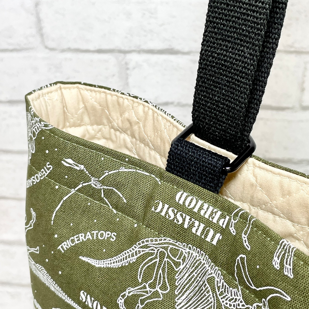 化石(カーキ)×黒 入園入学グッズ5点セット/裏地キルティング