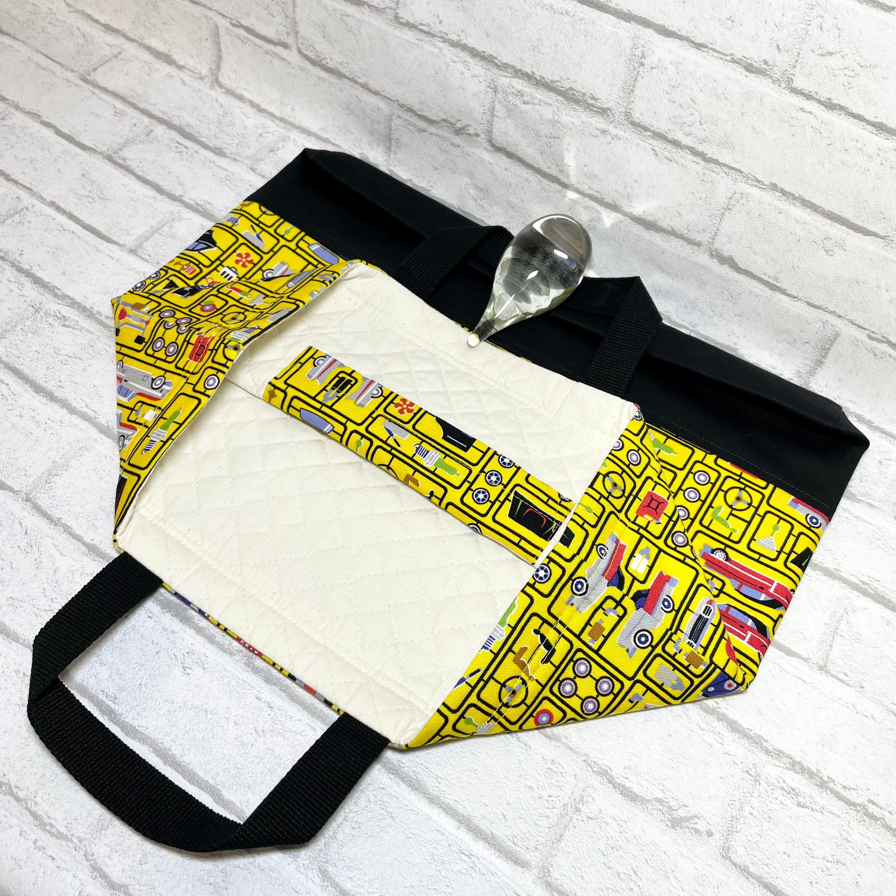 プラモデル(イエロー)×黒 入園入学グッズ5点セット/裏地キルティング