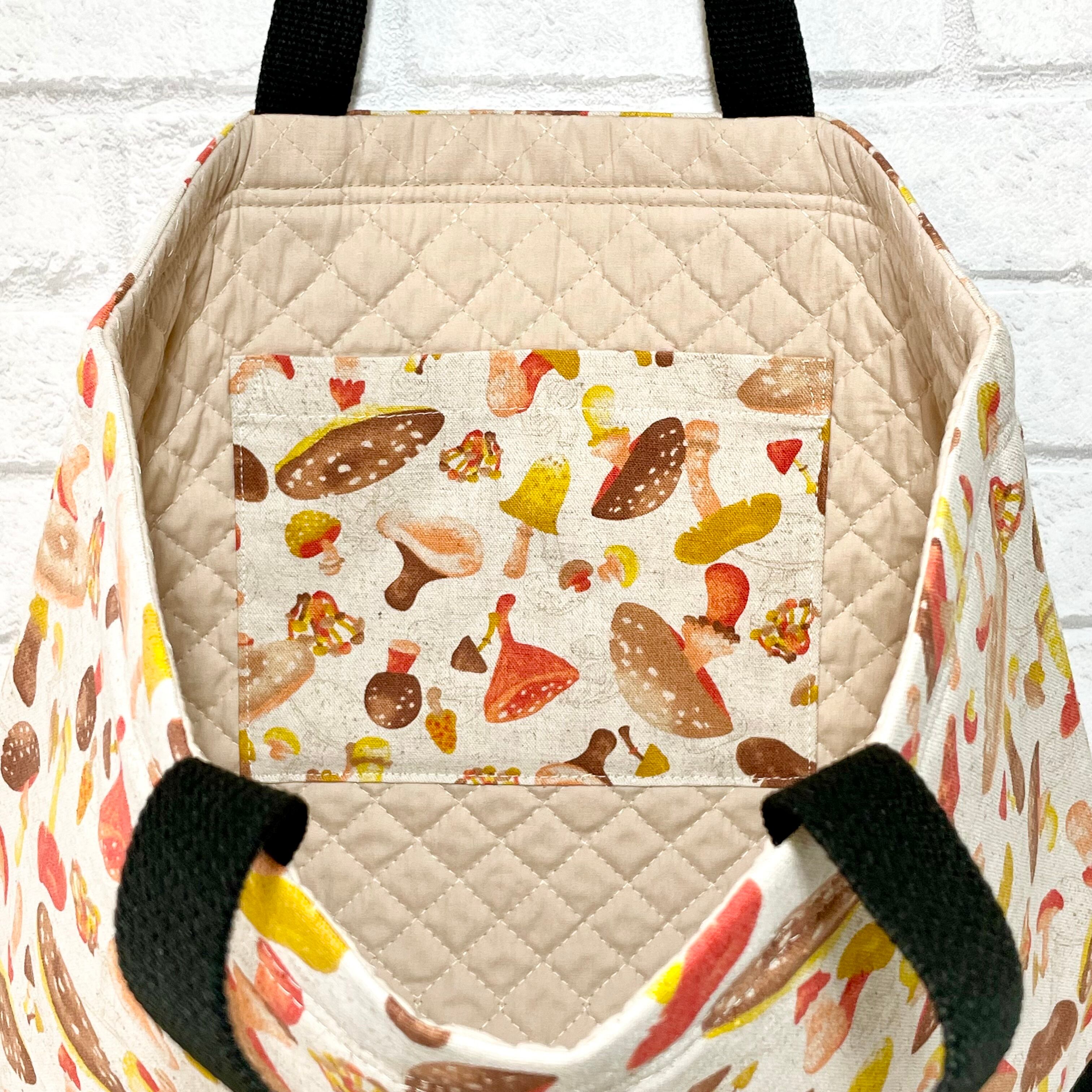きのこだらけ(生成り茶)×黒 入園入学グッズ5点セット/裏地キルティング