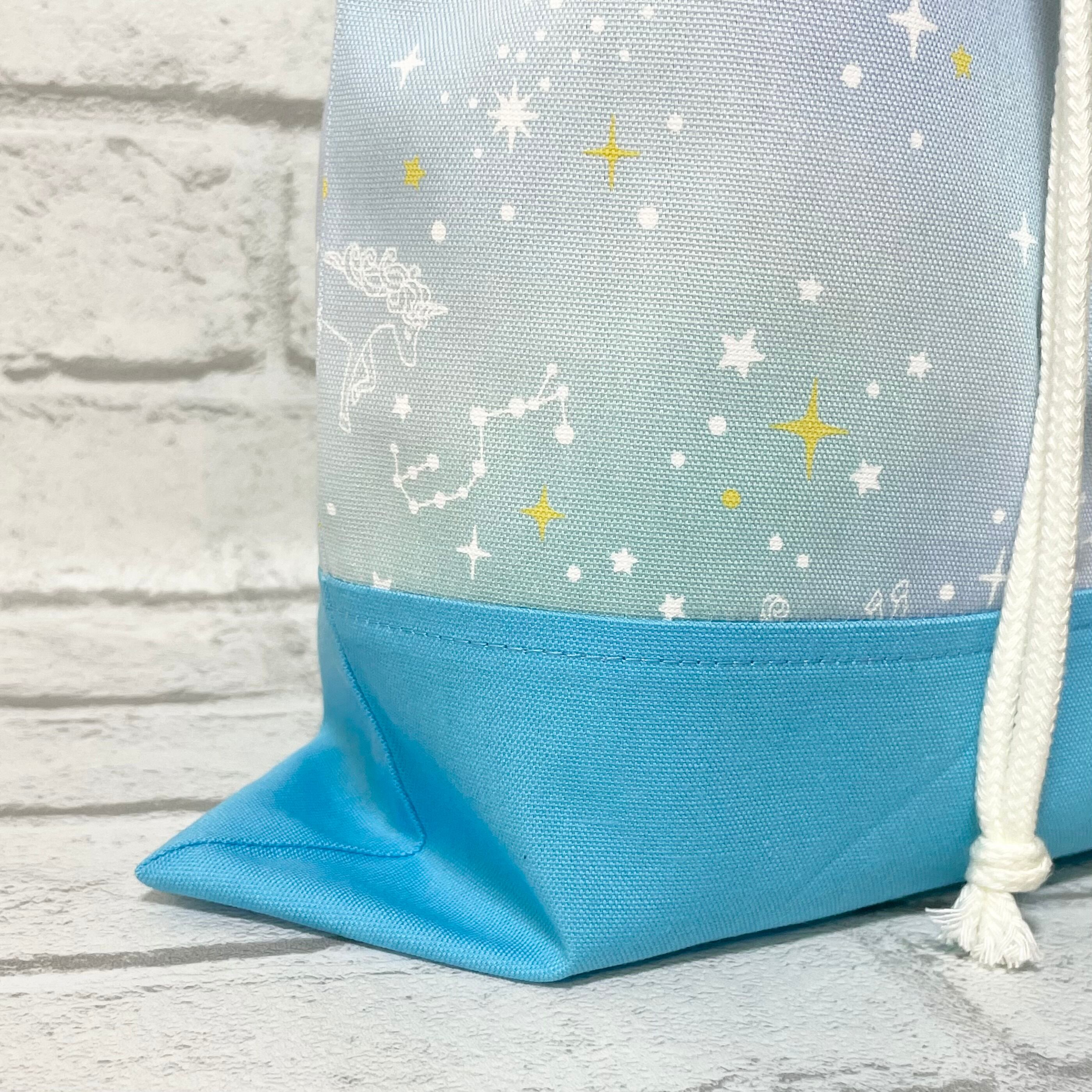 星座とユニコーン(グリーン)×ターコイズブルー 入園入学グッズ5点セット/裏地キルティング