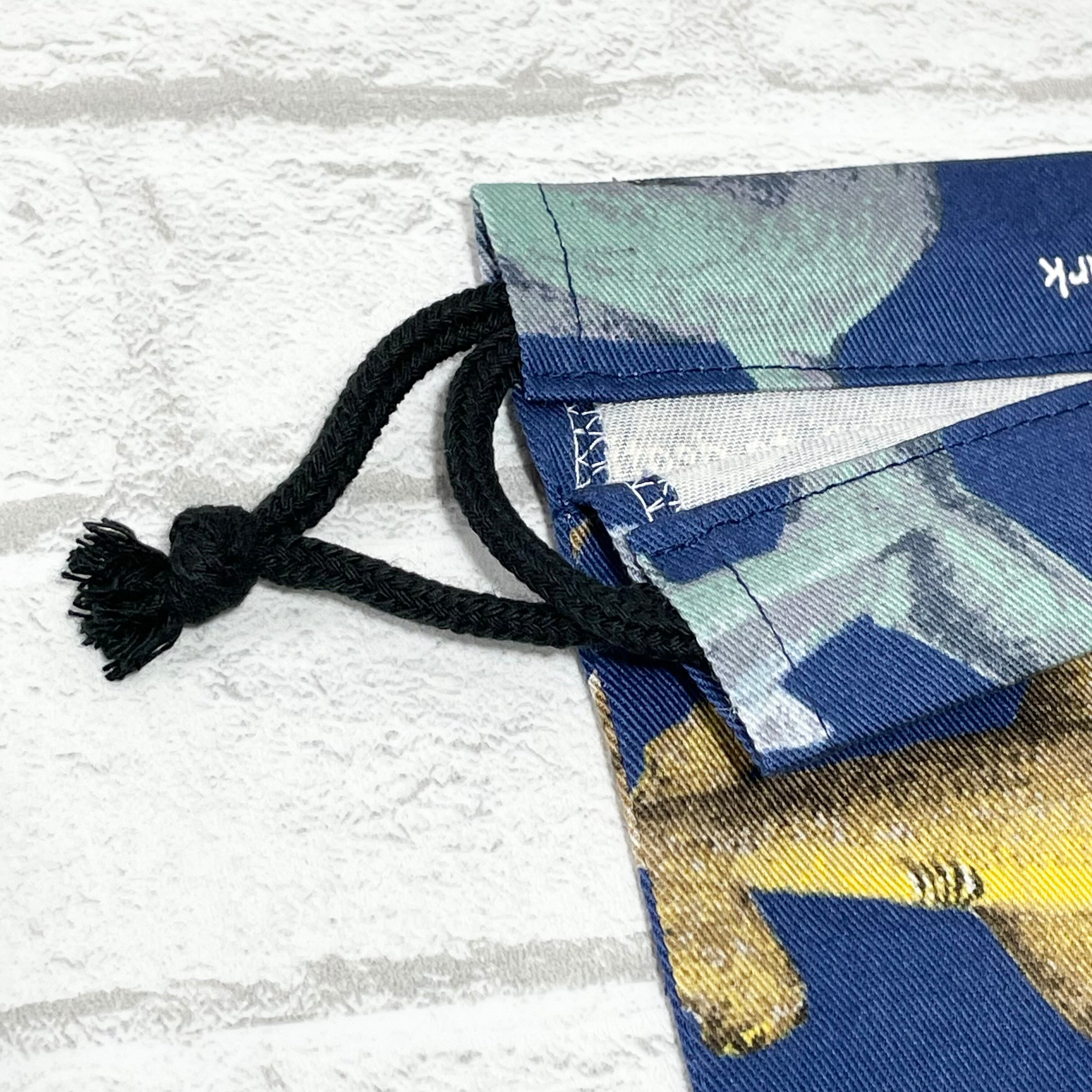 サメ図鑑(ネイビー)×黒 持ち手付き体操着袋/おきがえ袋
