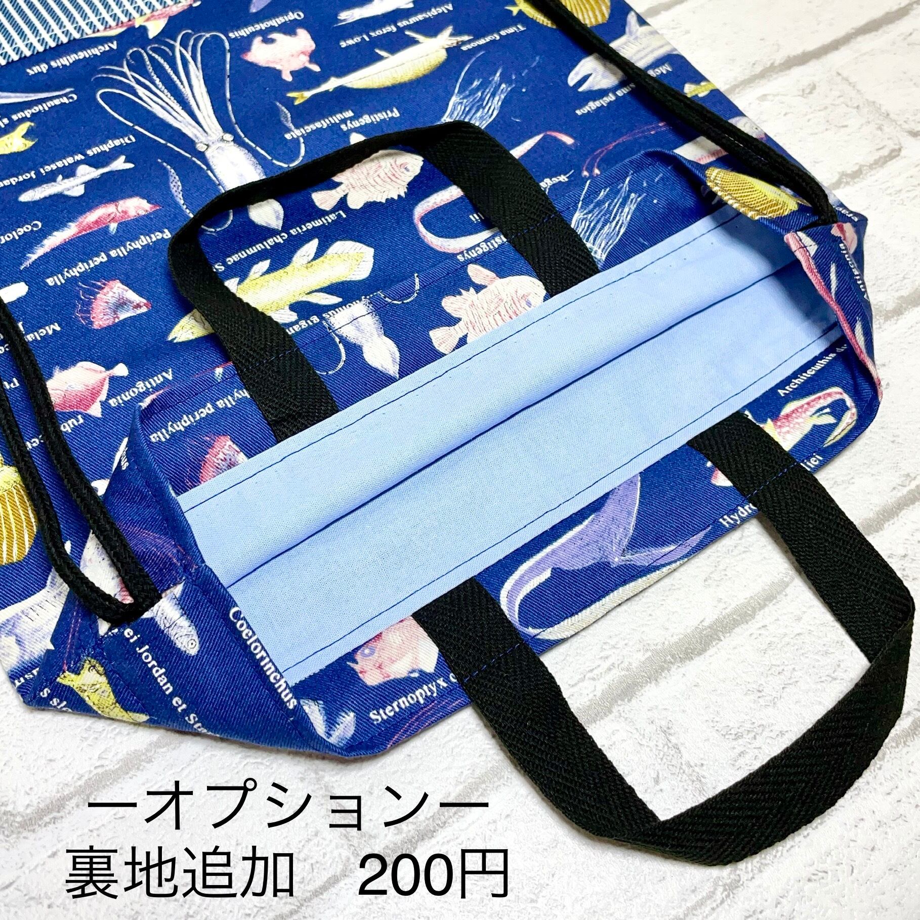 サメ図鑑(ブルー)×黒 お道具袋/給食袋 30×30×4cm