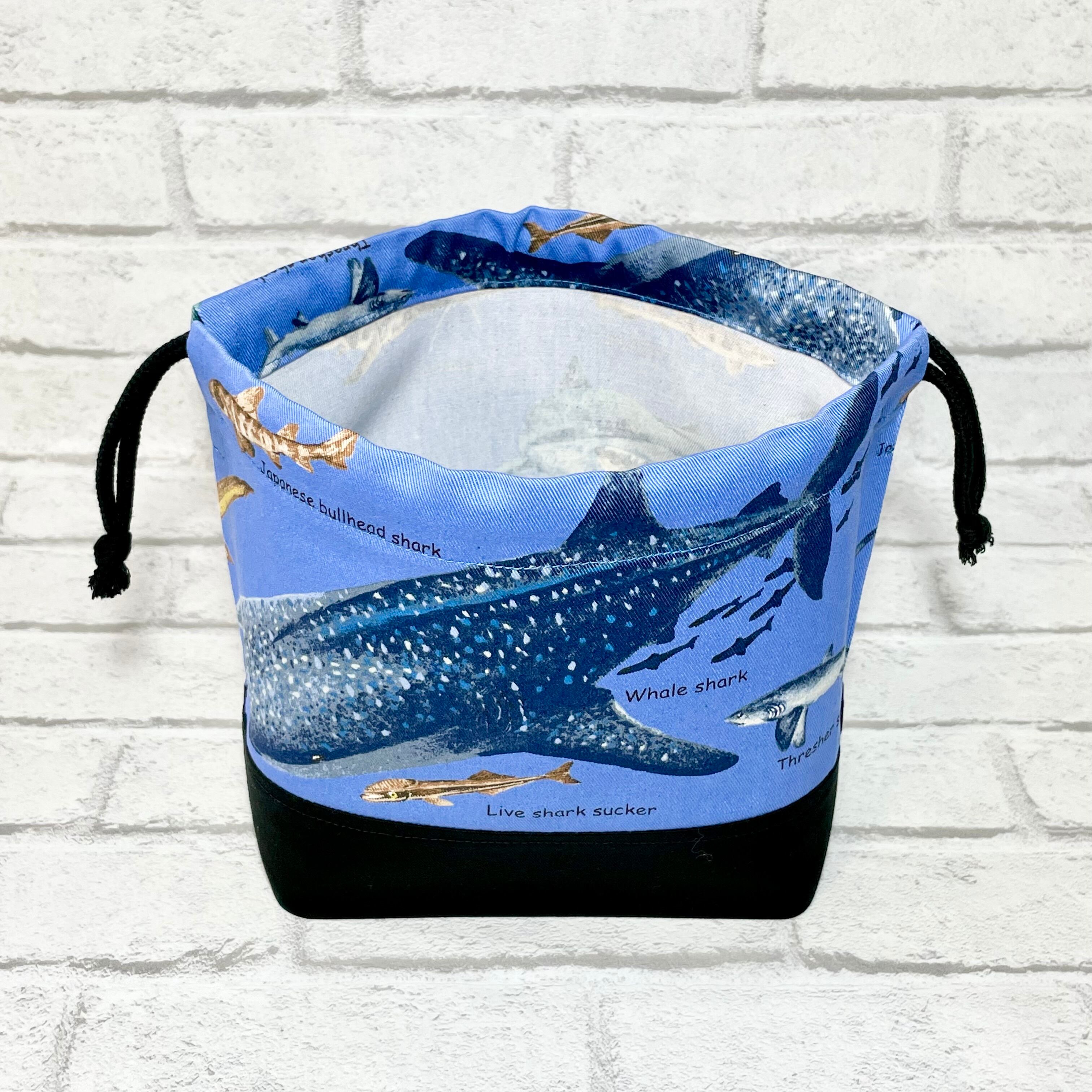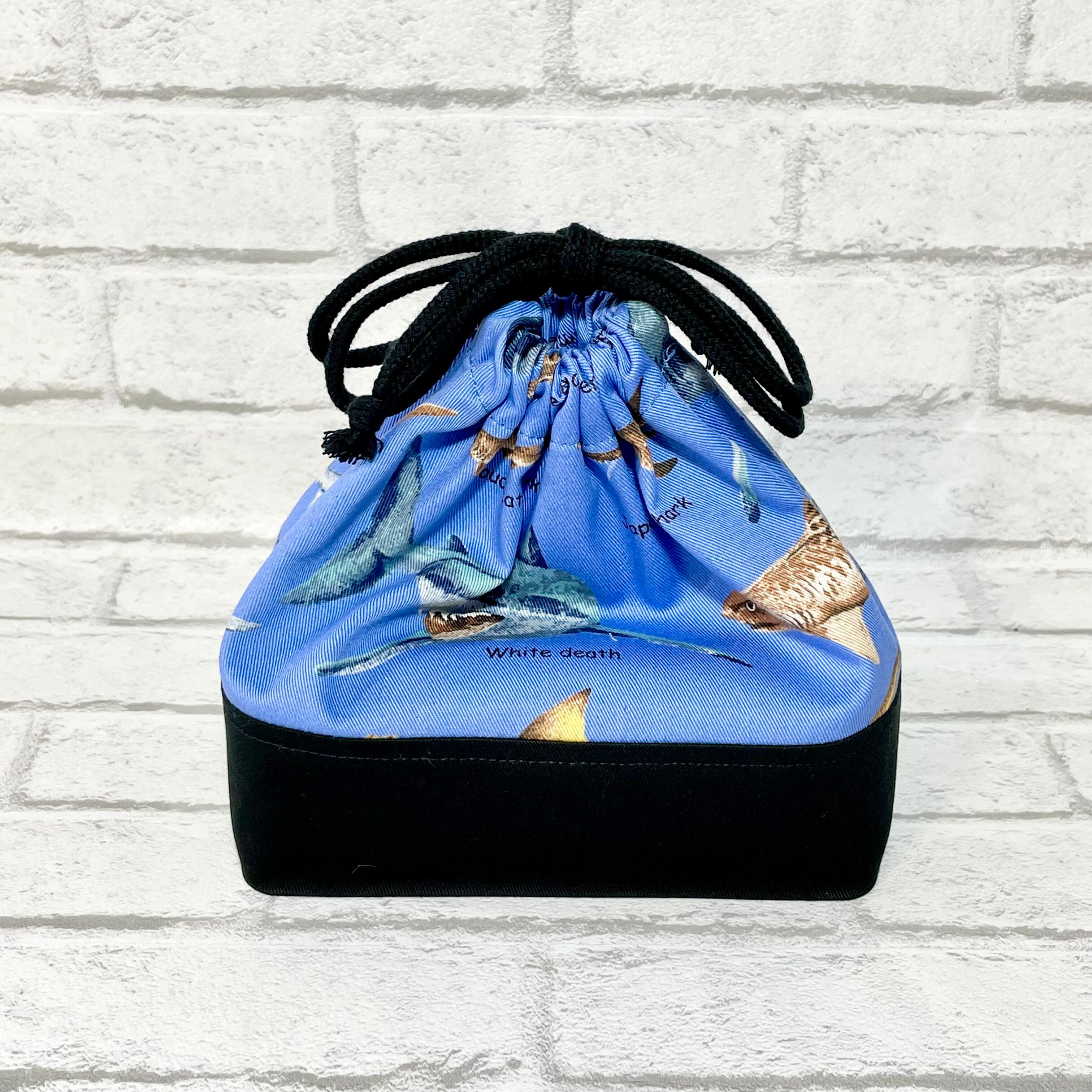 サメ図鑑(ブルー)×黒 お弁当袋/ランチバッグ 18×26×10cm