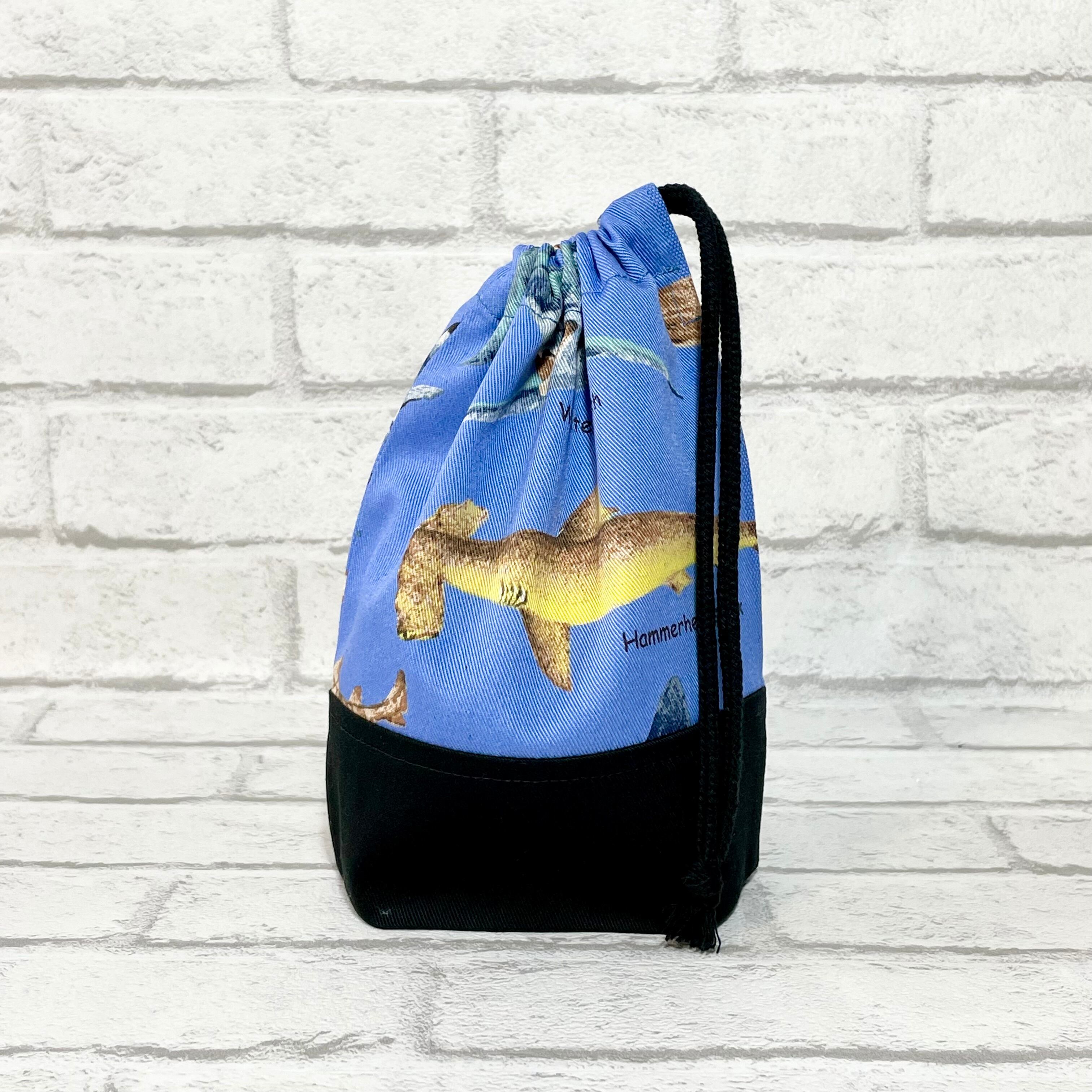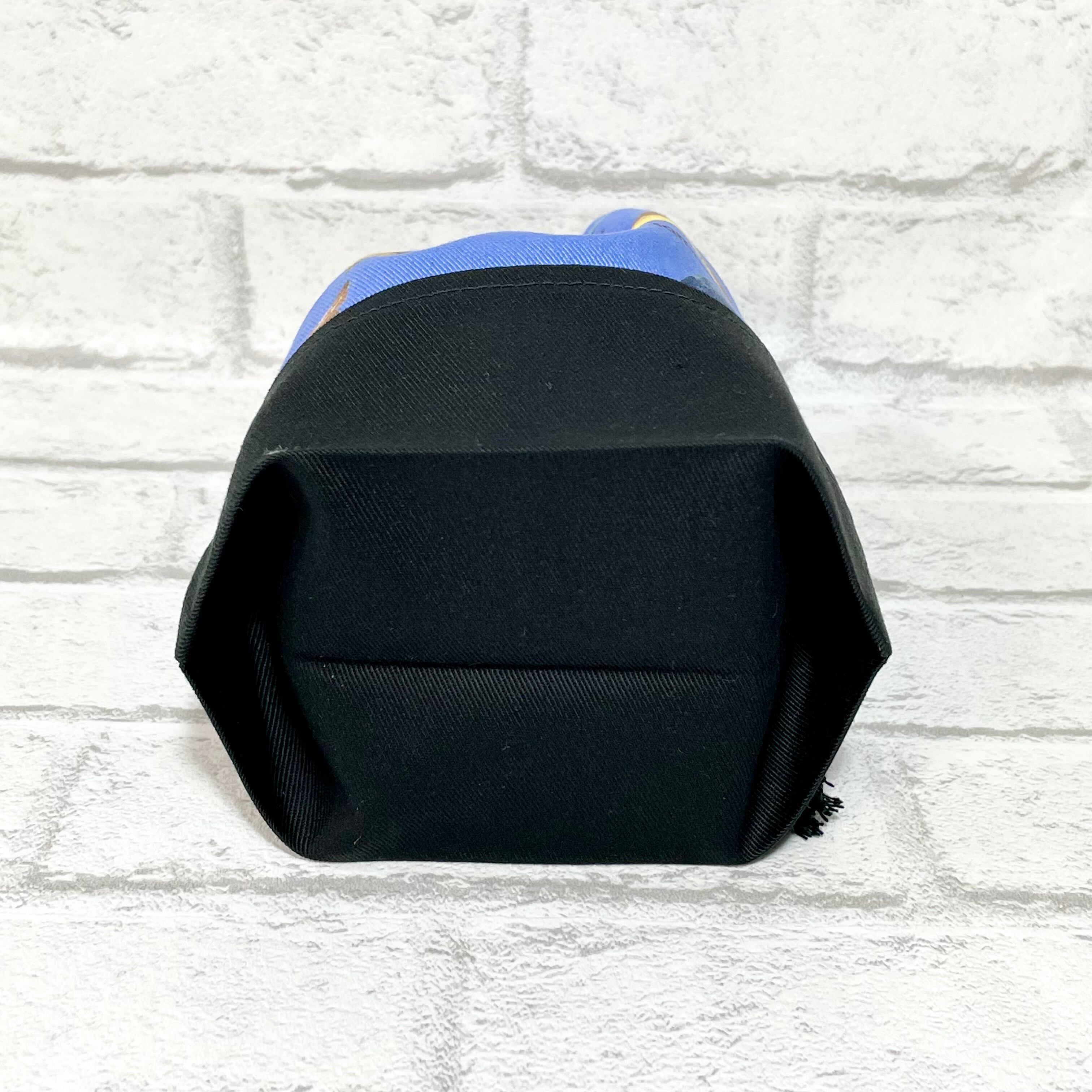 サメ図鑑(ブルー)×黒 コップ袋/コップ入れ 18×16×cm