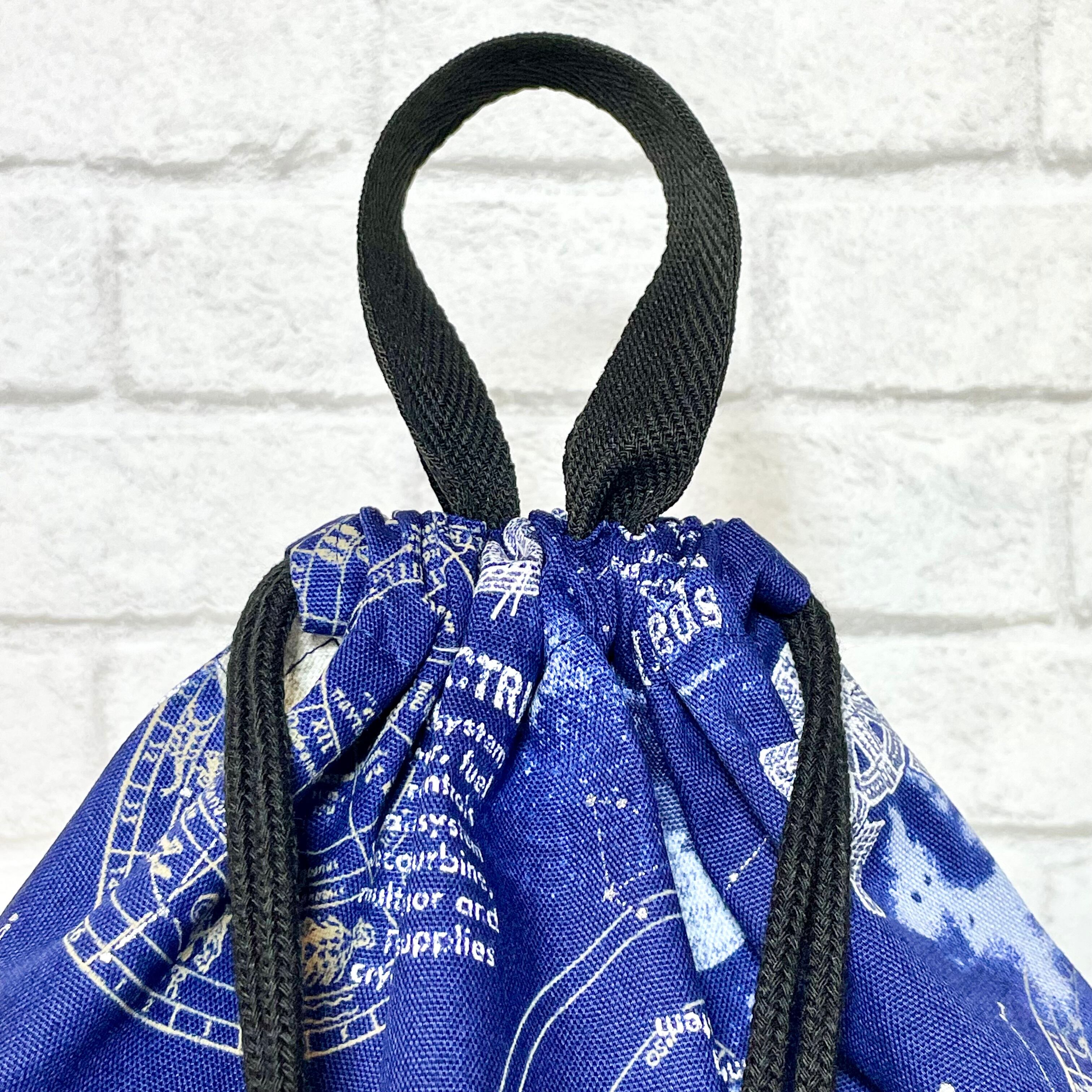 宇宙(ネイビー)×ストライプ 持ち手付き体操着袋38×30cm おきがえ袋