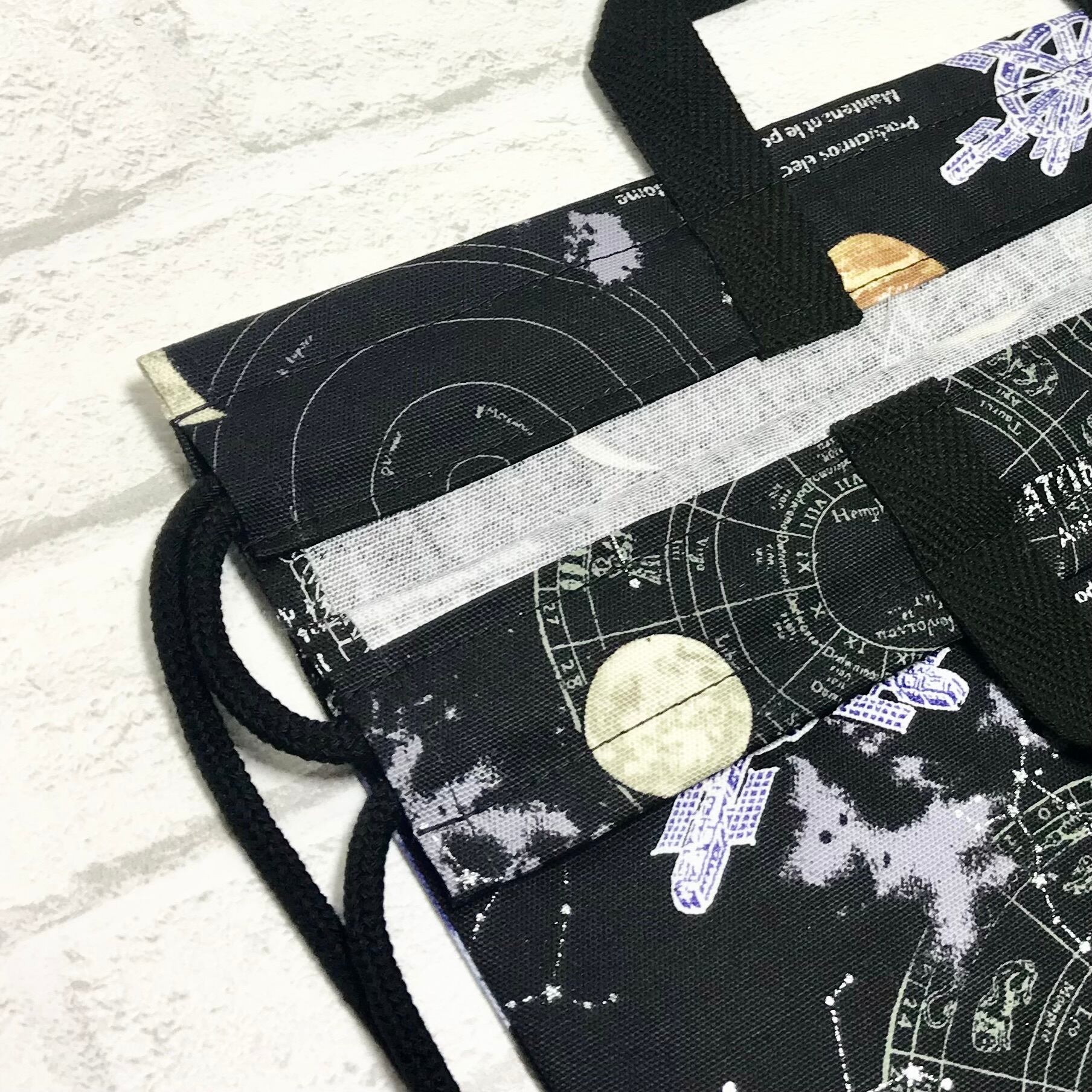 宇宙(ブラック)×ストライプ ナップサック(裏地なし)38×30cm