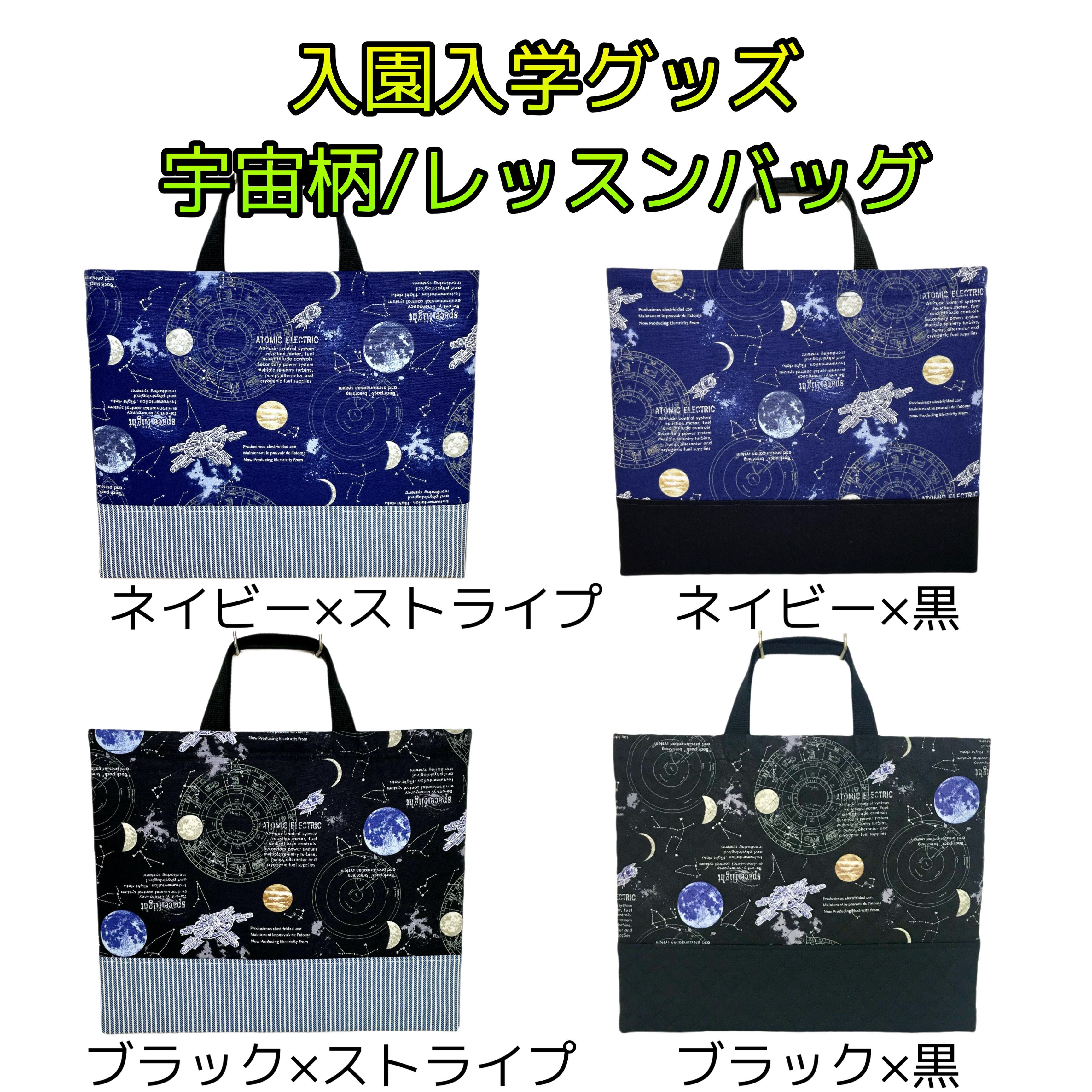 宇宙(ブラック)×黒 レッスンバッグ40×30×4cm