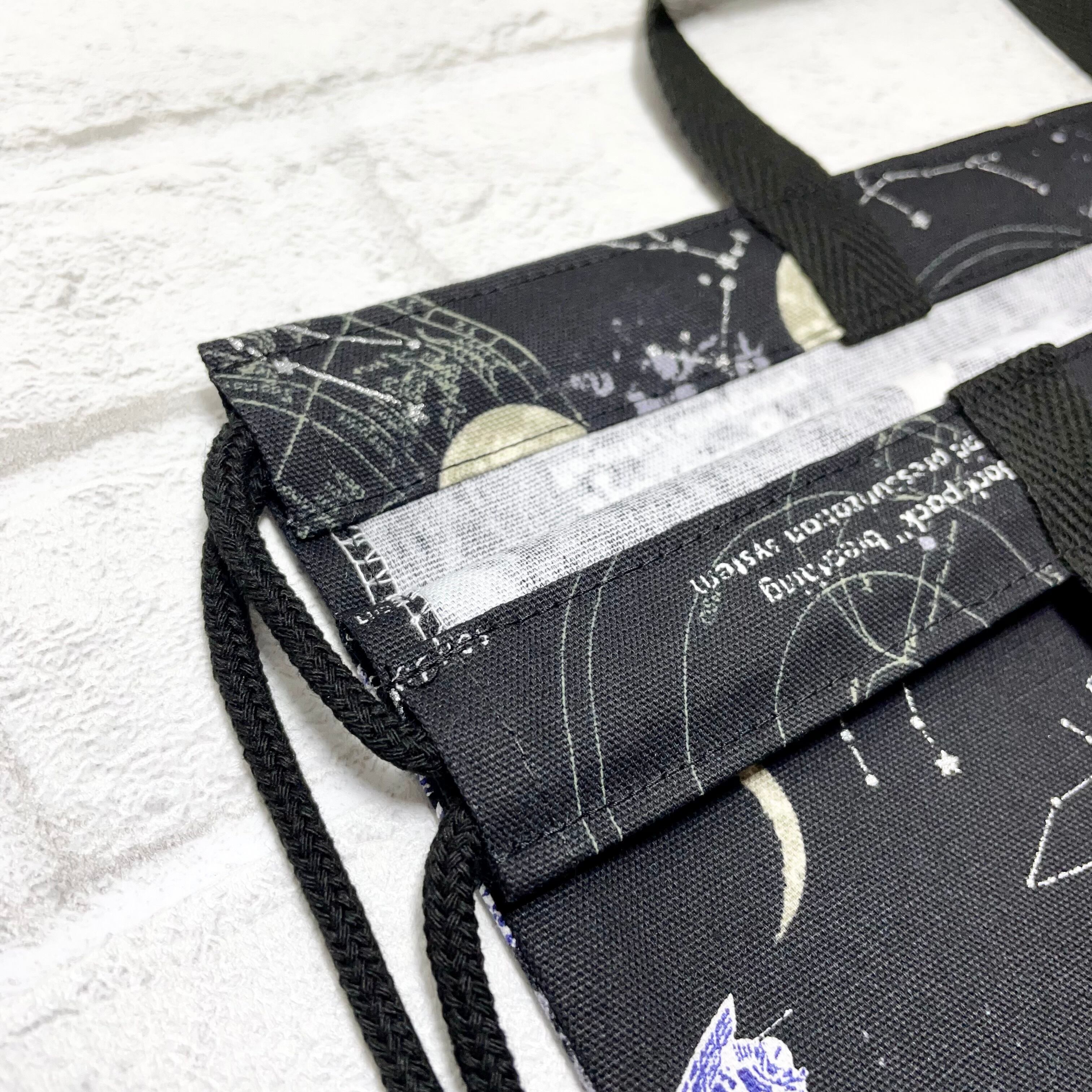 宇宙(ブラック)×黒 ナップサック(裏地なし)38×30cm