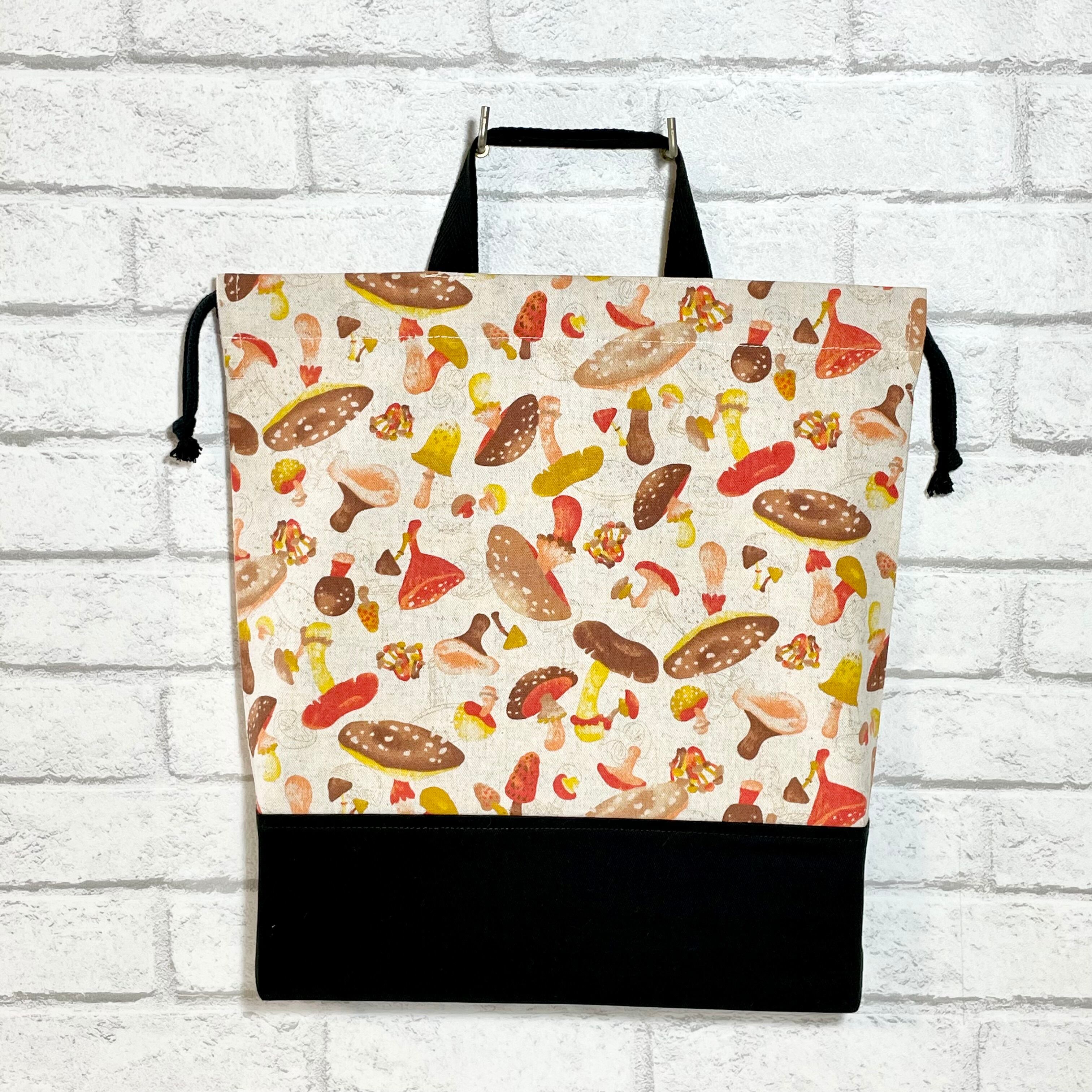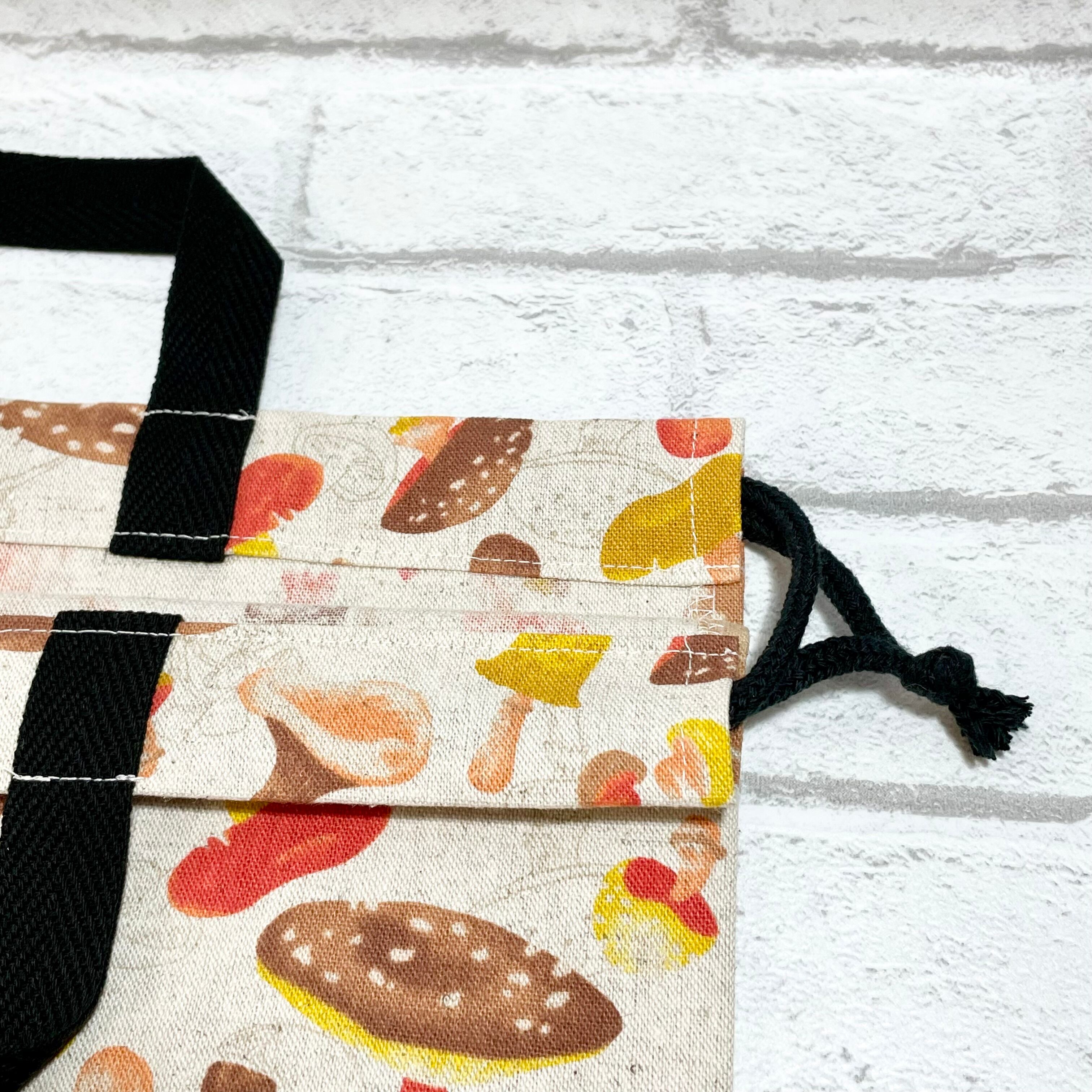 きのこだらけ(生成り茶)×黒 お道具袋30×30×4cm