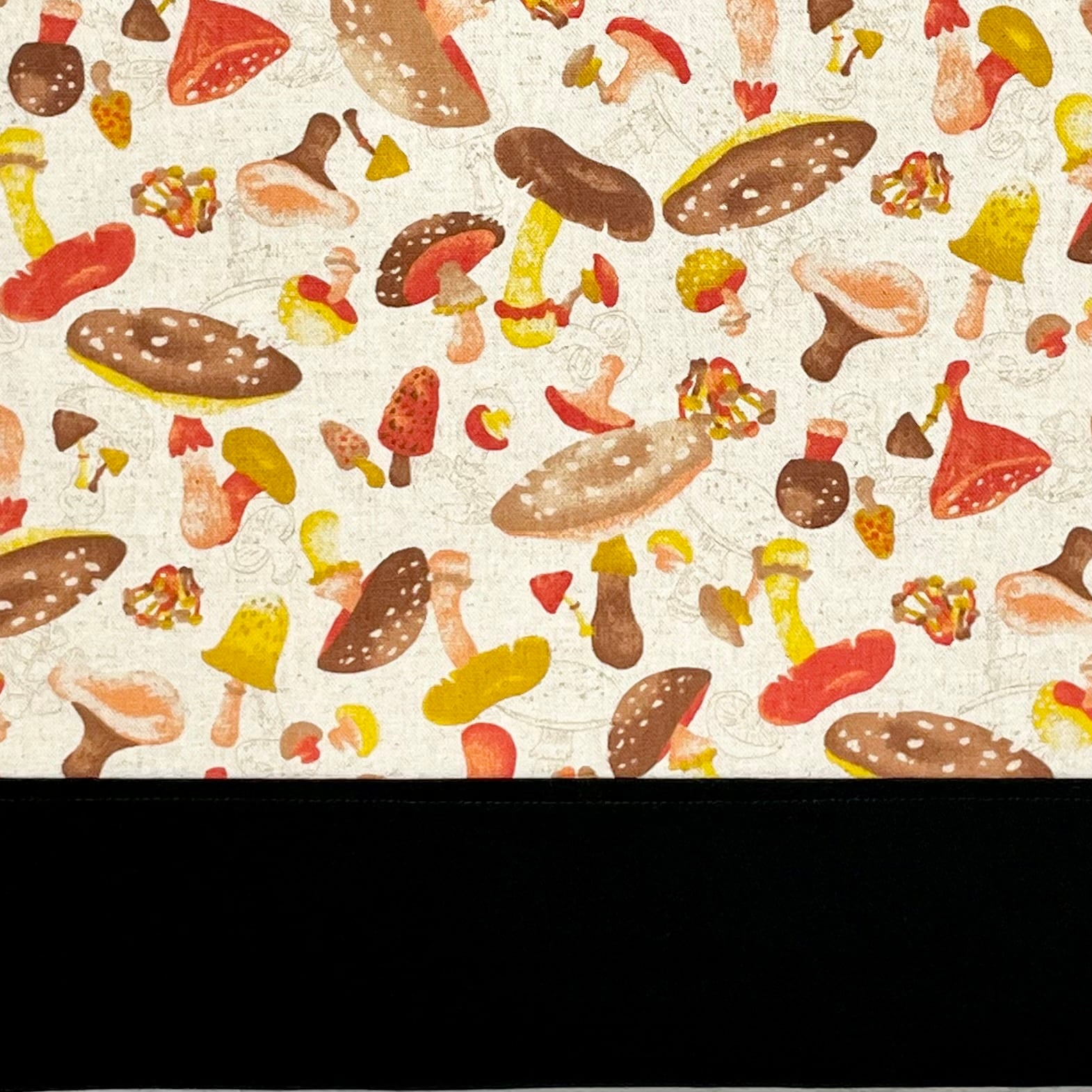 きのこだらけ(生成り茶)×黒 お弁当袋18×26×10cm