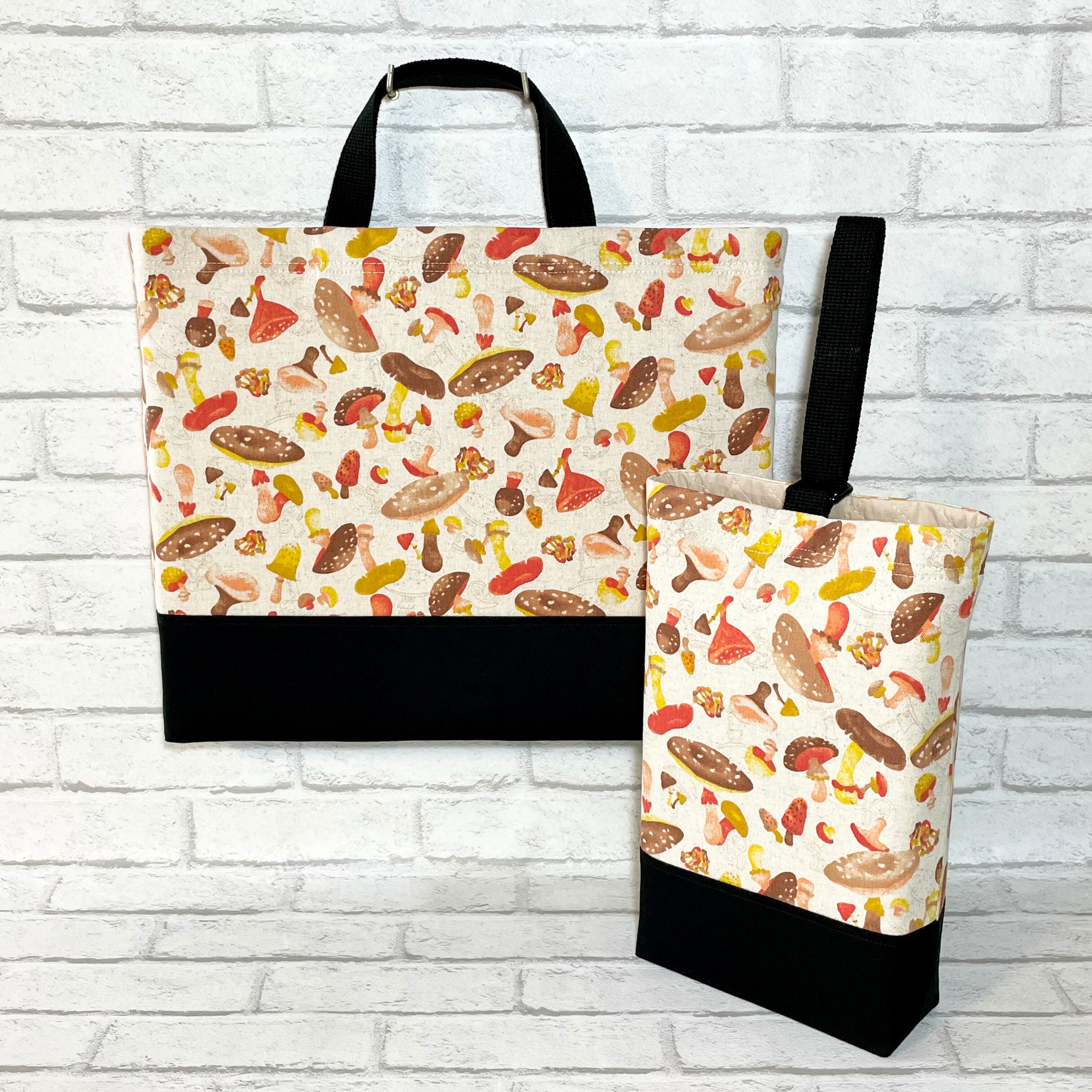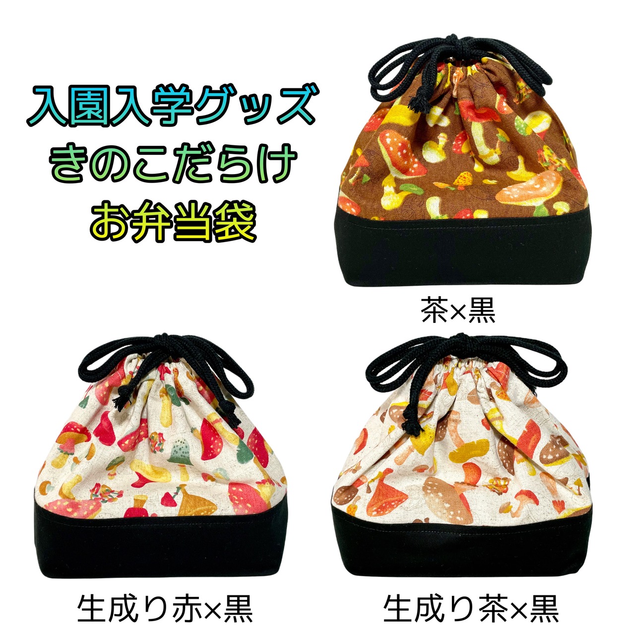 大人気のきのこだらけ(生成り茶)×黒 お弁当袋が新登場です!魅力的なきのこデザインが、お昼のランチタイムをより楽しく演出します。高品質な素材を使用しており、耐久性も抜群です。ワクワクするデザインで、大切なお弁当をしっかり守ります。