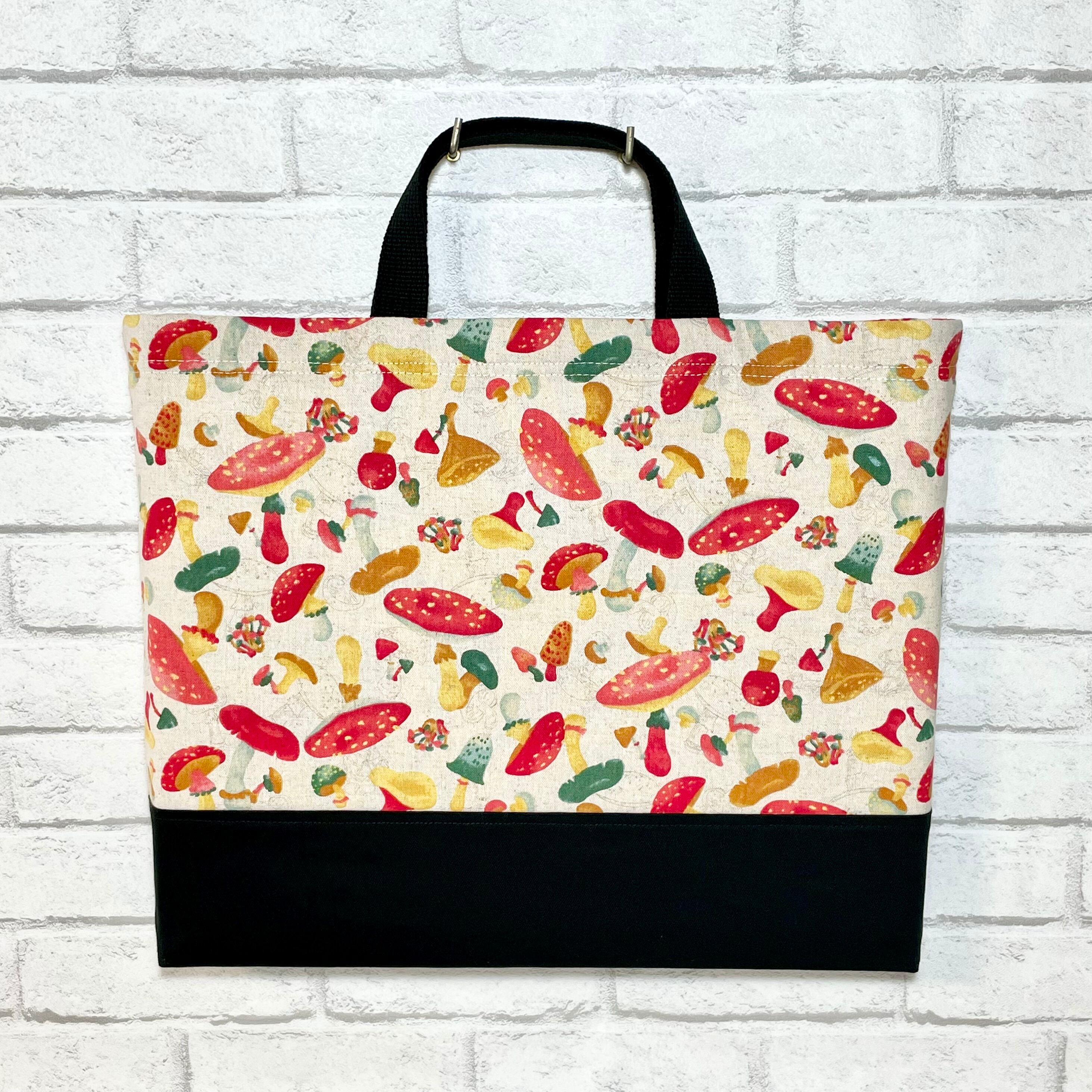 きのこだらけ(生成り赤)×黒 レッスンバッグ