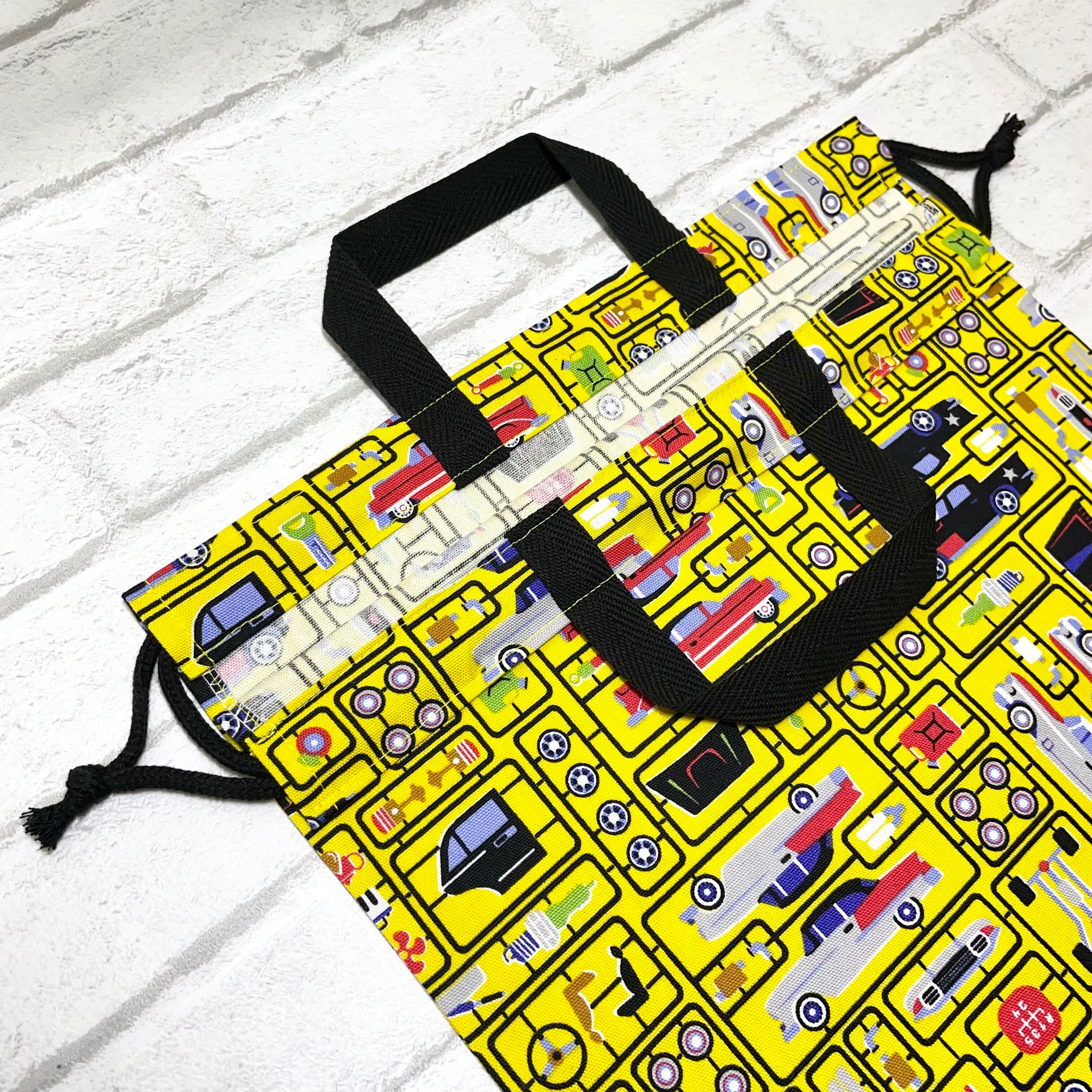 プラモデル(イエロー)×黒 持ち手付き体操着袋38×30cm