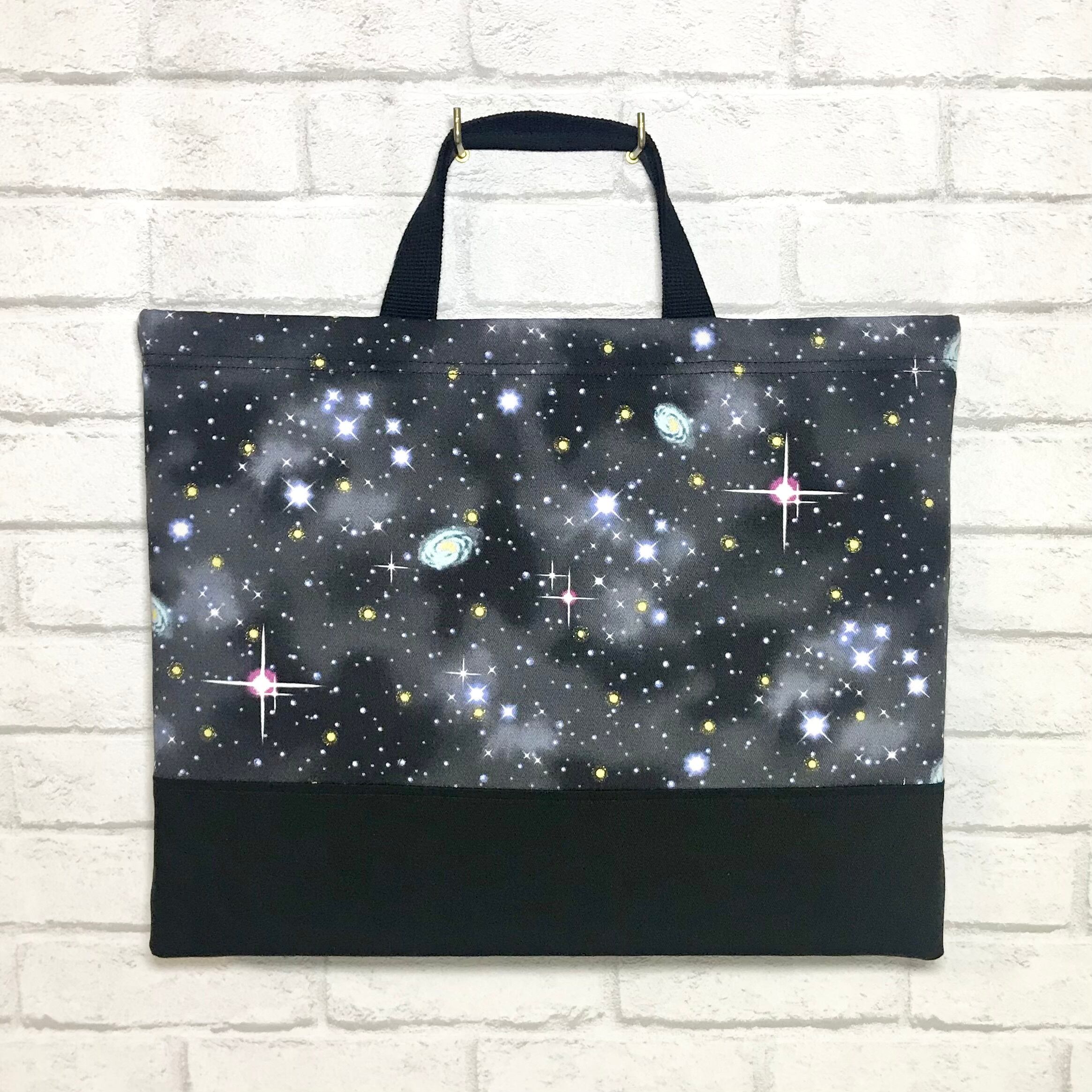 天体(ブラック)×黒 レッスンバッグ40×30×4cm