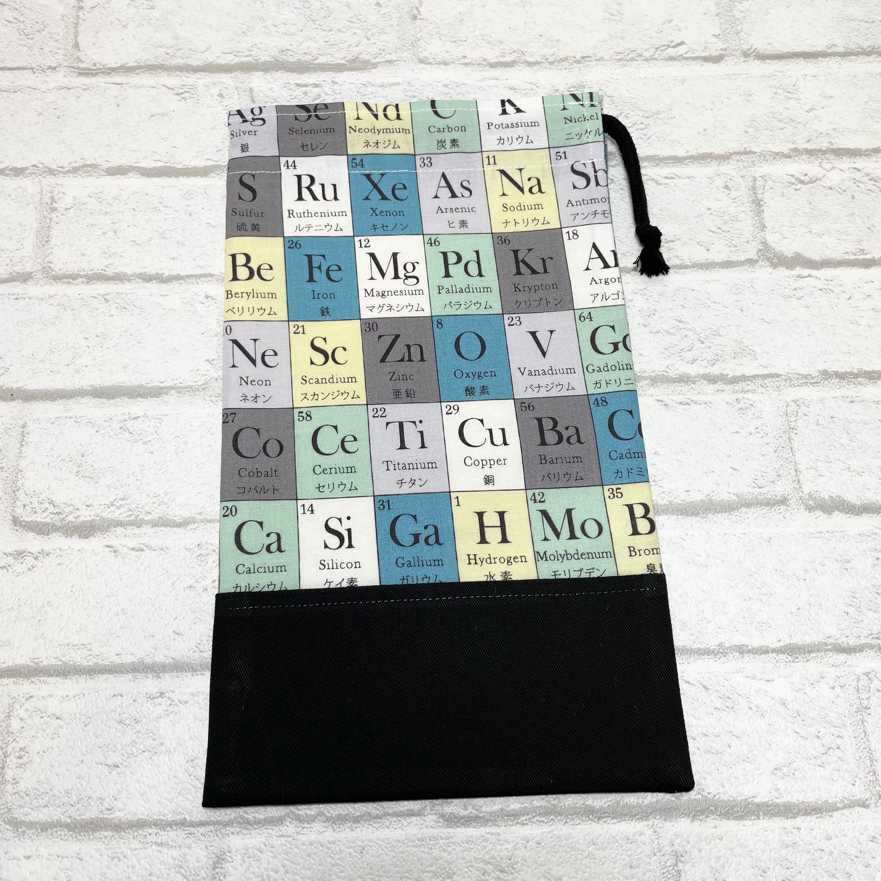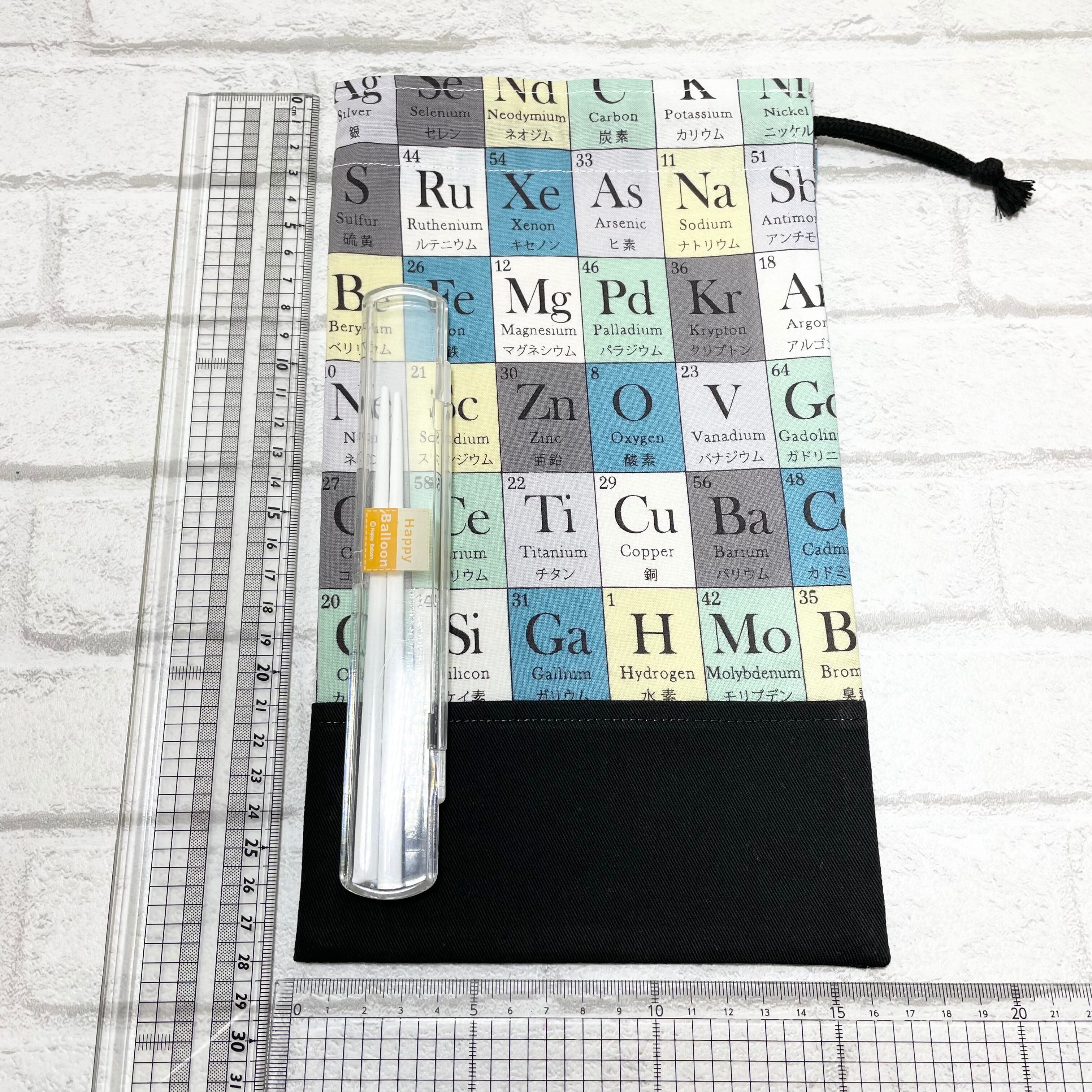 元素記号(グリーン)×黒 お箸袋28×16cm