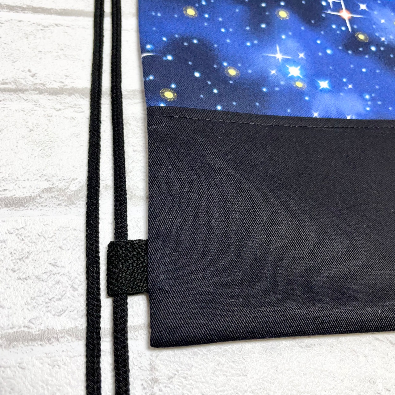天体(ネイビー)×黒 ナップサック(裏地付き)38×30cm