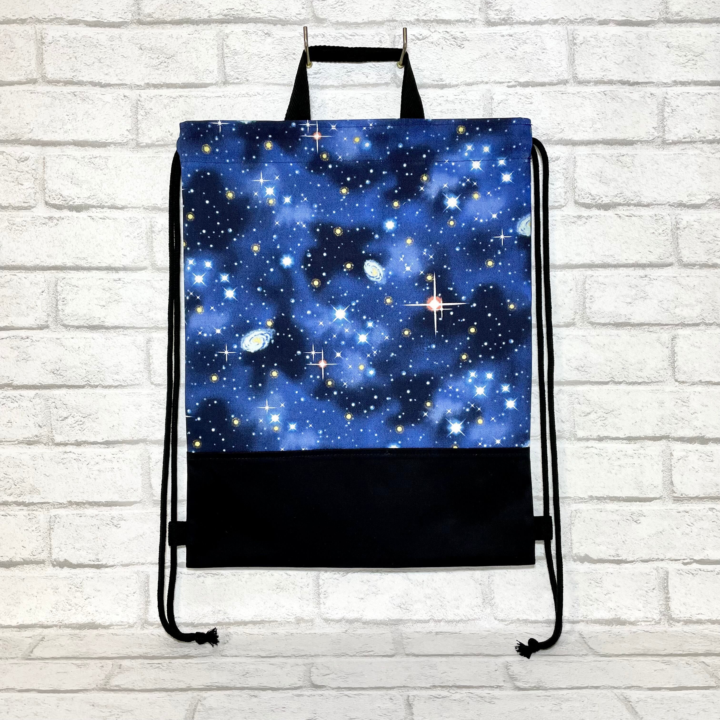 天体(ネイビー)×黒 ナップサック(裏地なし)38×30cm