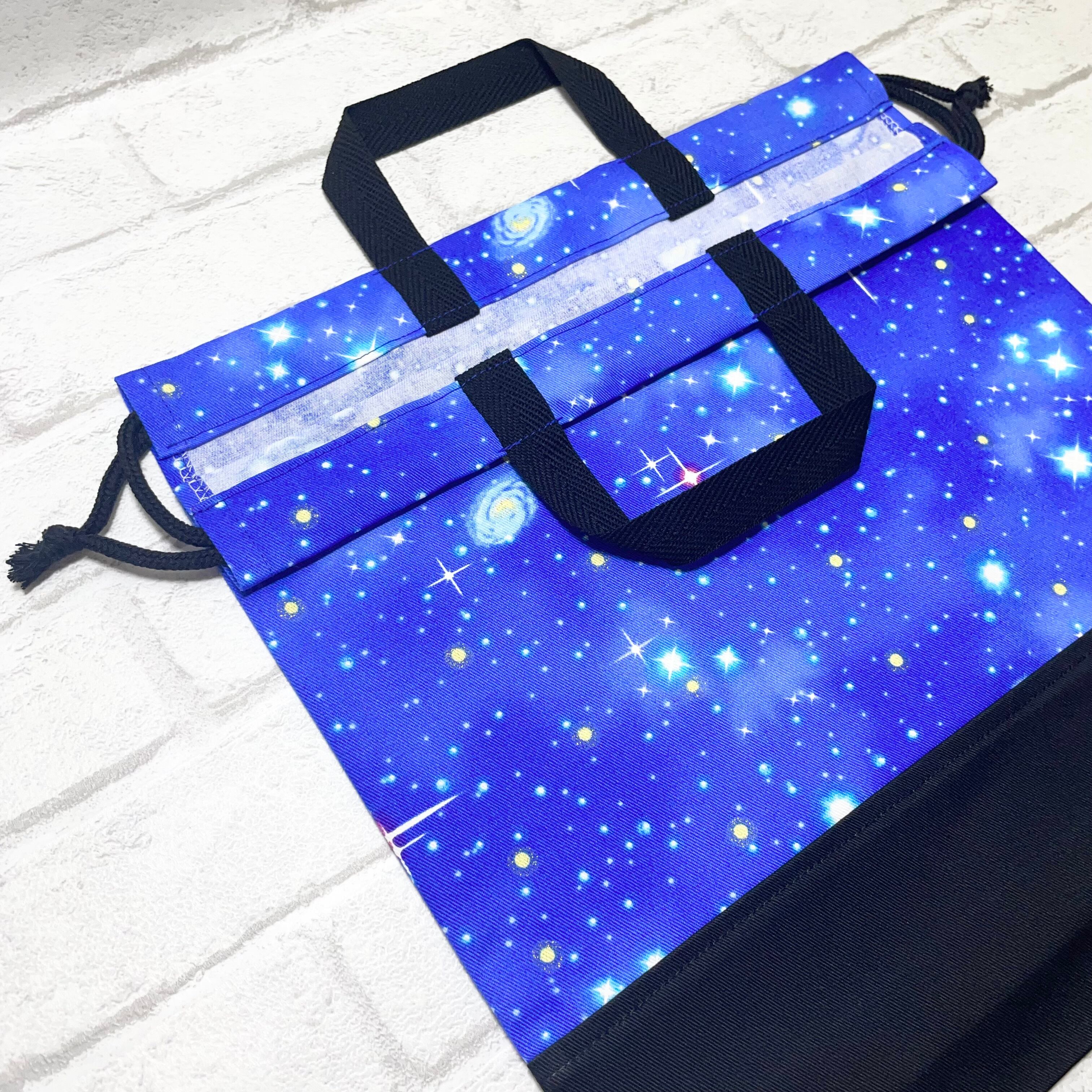 天体(ブルー)×黒 お道具袋30×30×4cm