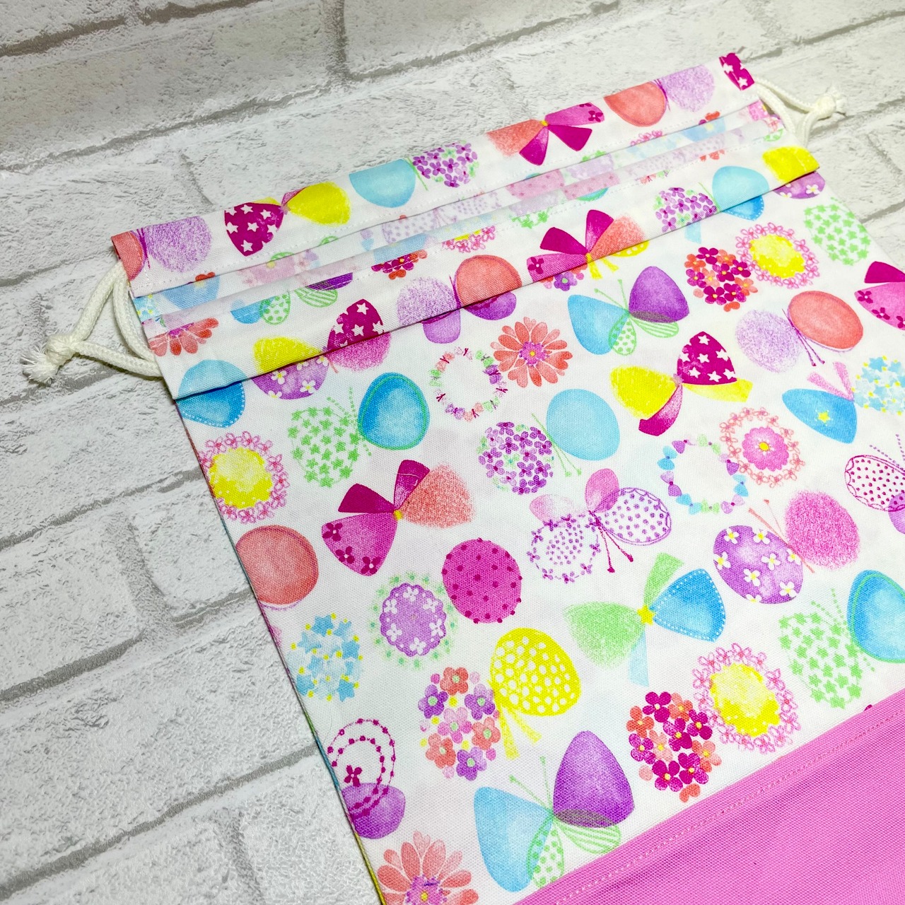 カラフル(WH)×ピンク 体操着袋38×30cm