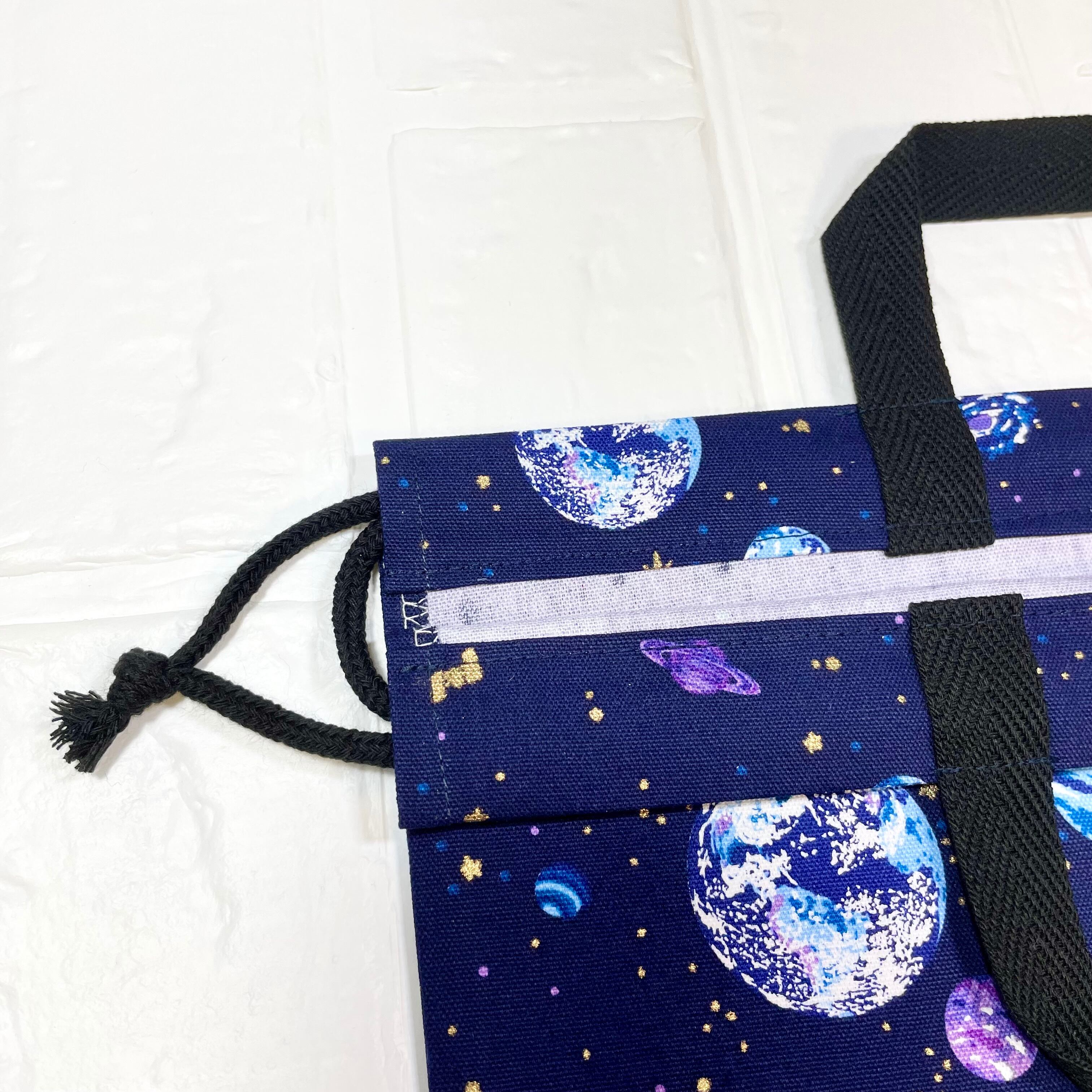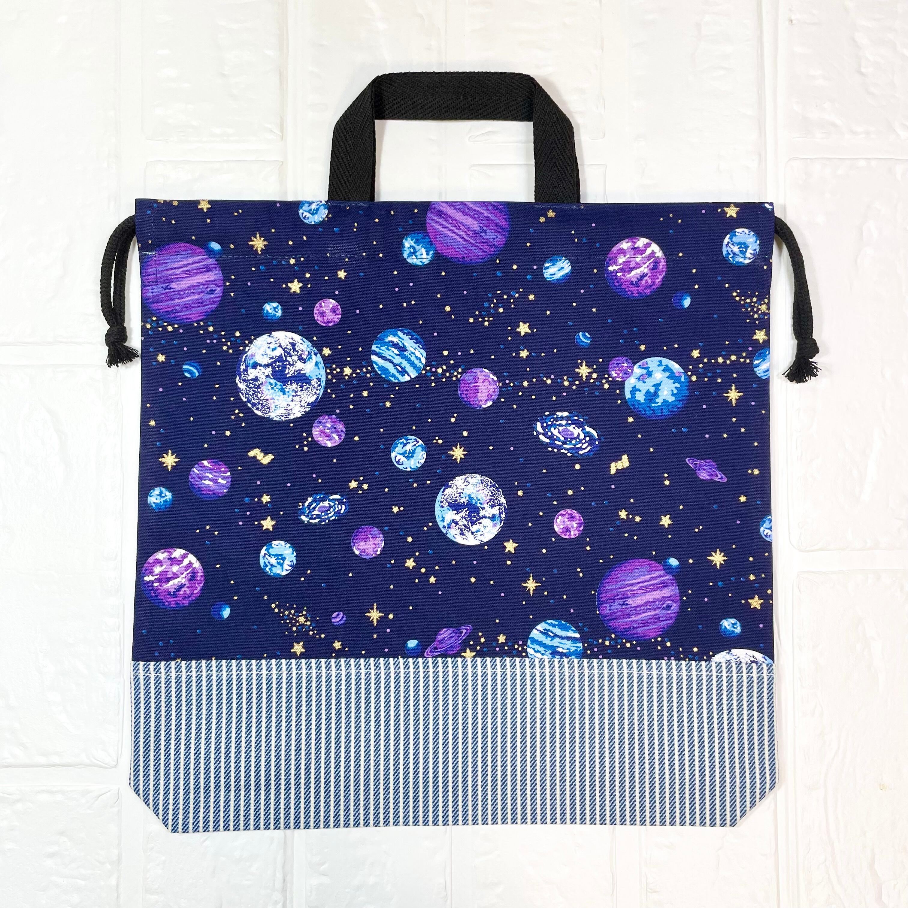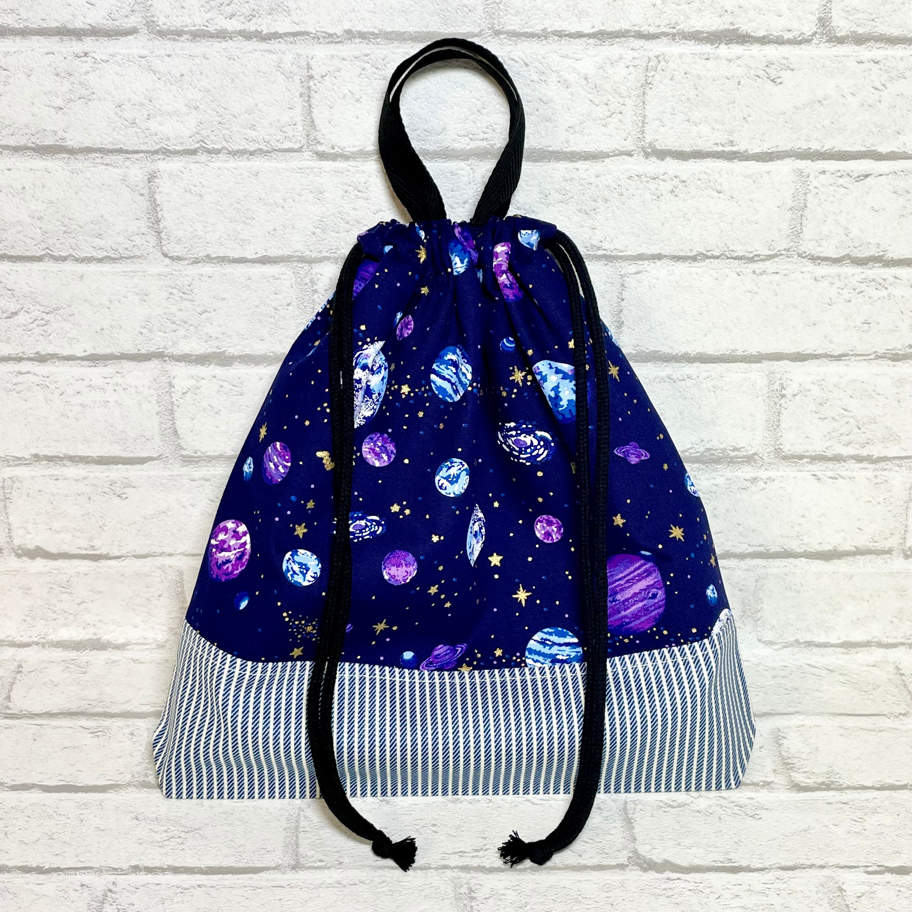 惑星(パープル)×ストライプ お道具袋30×30×4cm