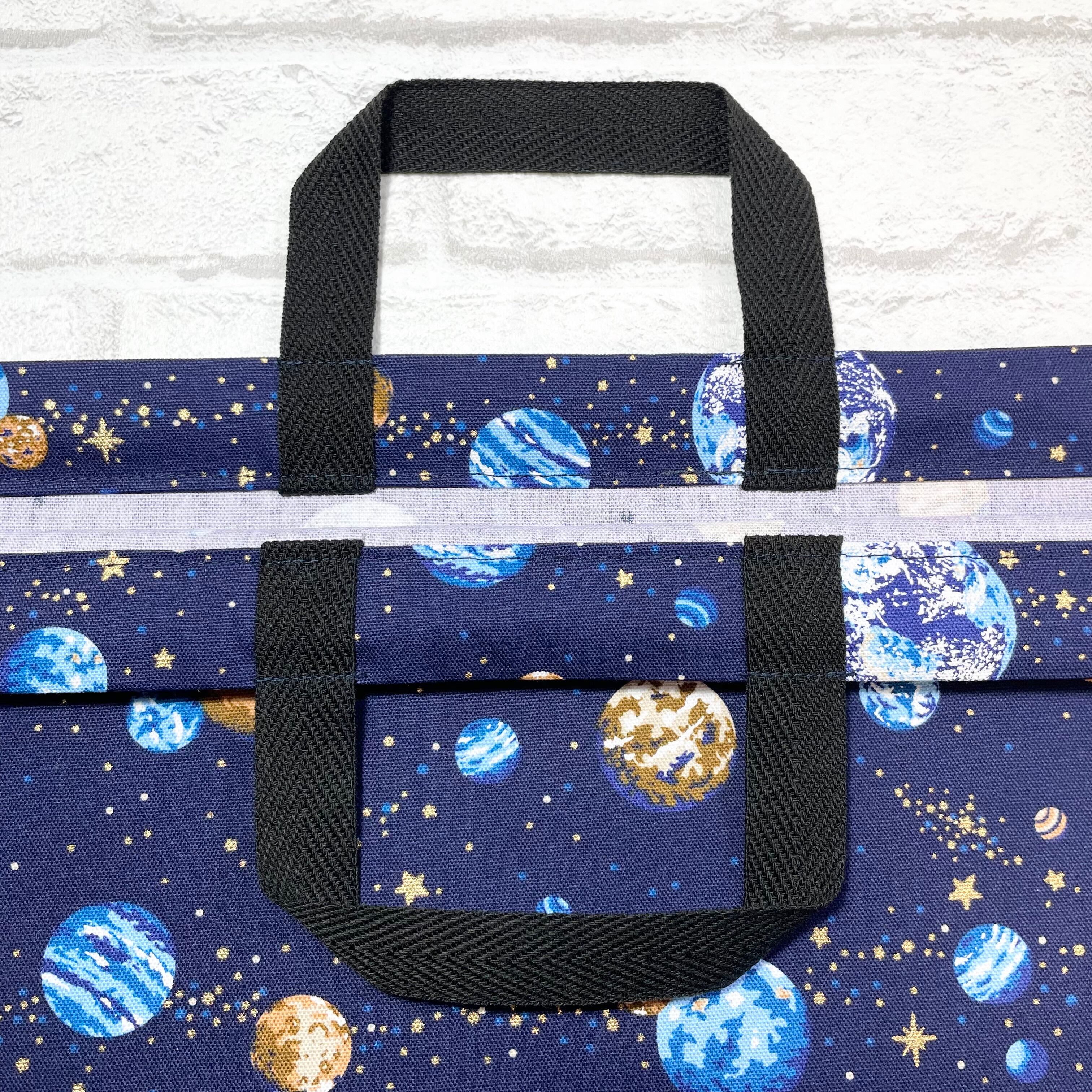 惑星(ブラウン)×ストライプ 持ち手付き体操着袋38×30cm