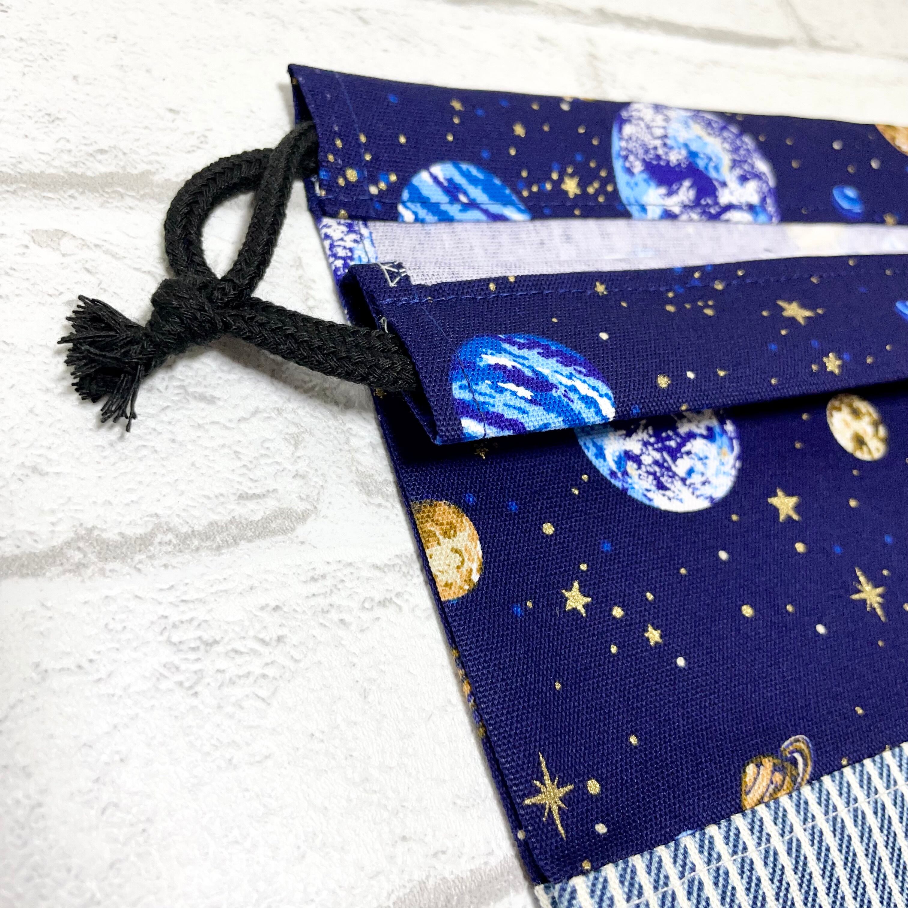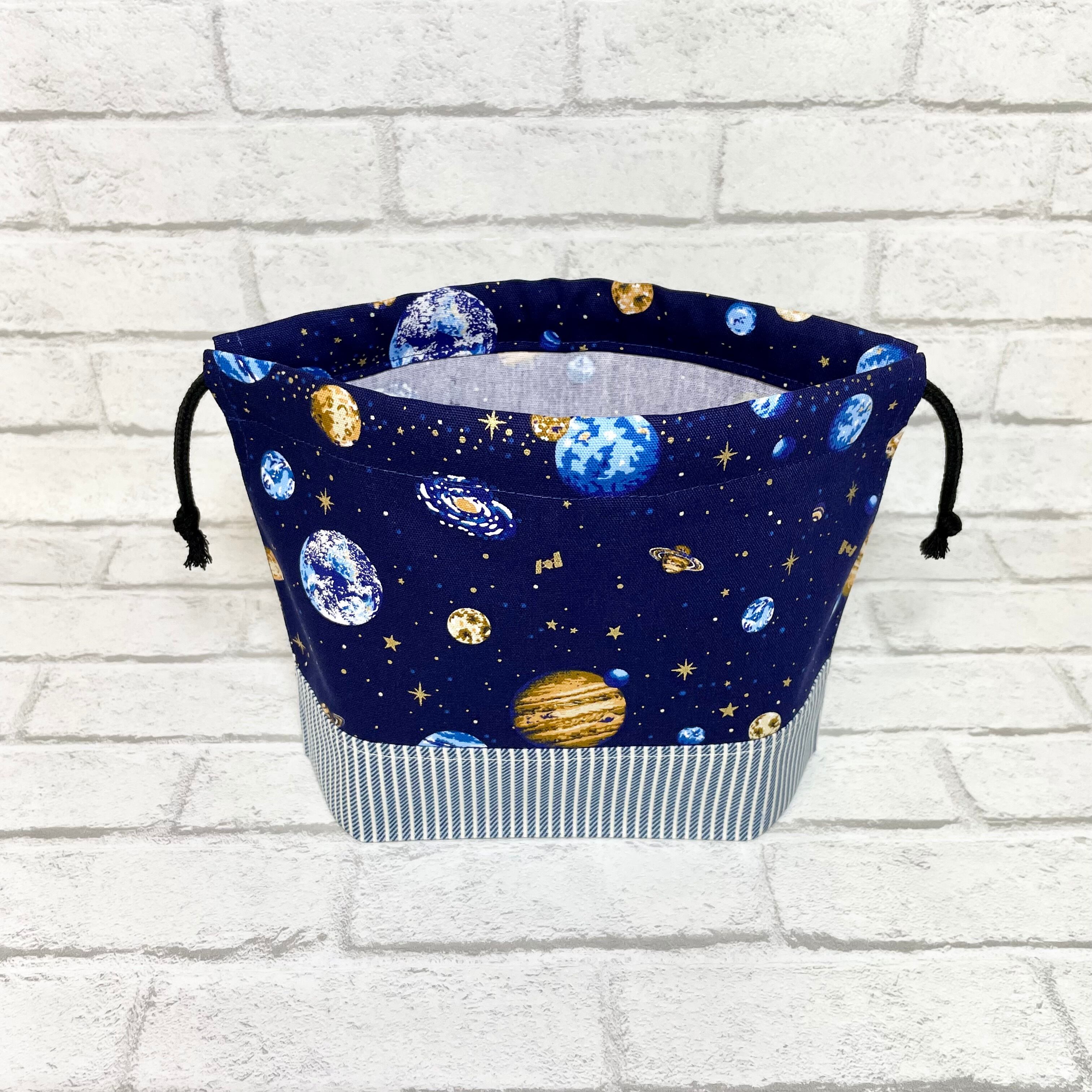 惑星(ブラウン)×ストライプ お弁当袋18×26×10cm