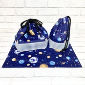 ブラウンの惑星柄が美しく印刷されたデザインは、落ち着いた雰囲気の中にも遊び心を感じさせる一品です。