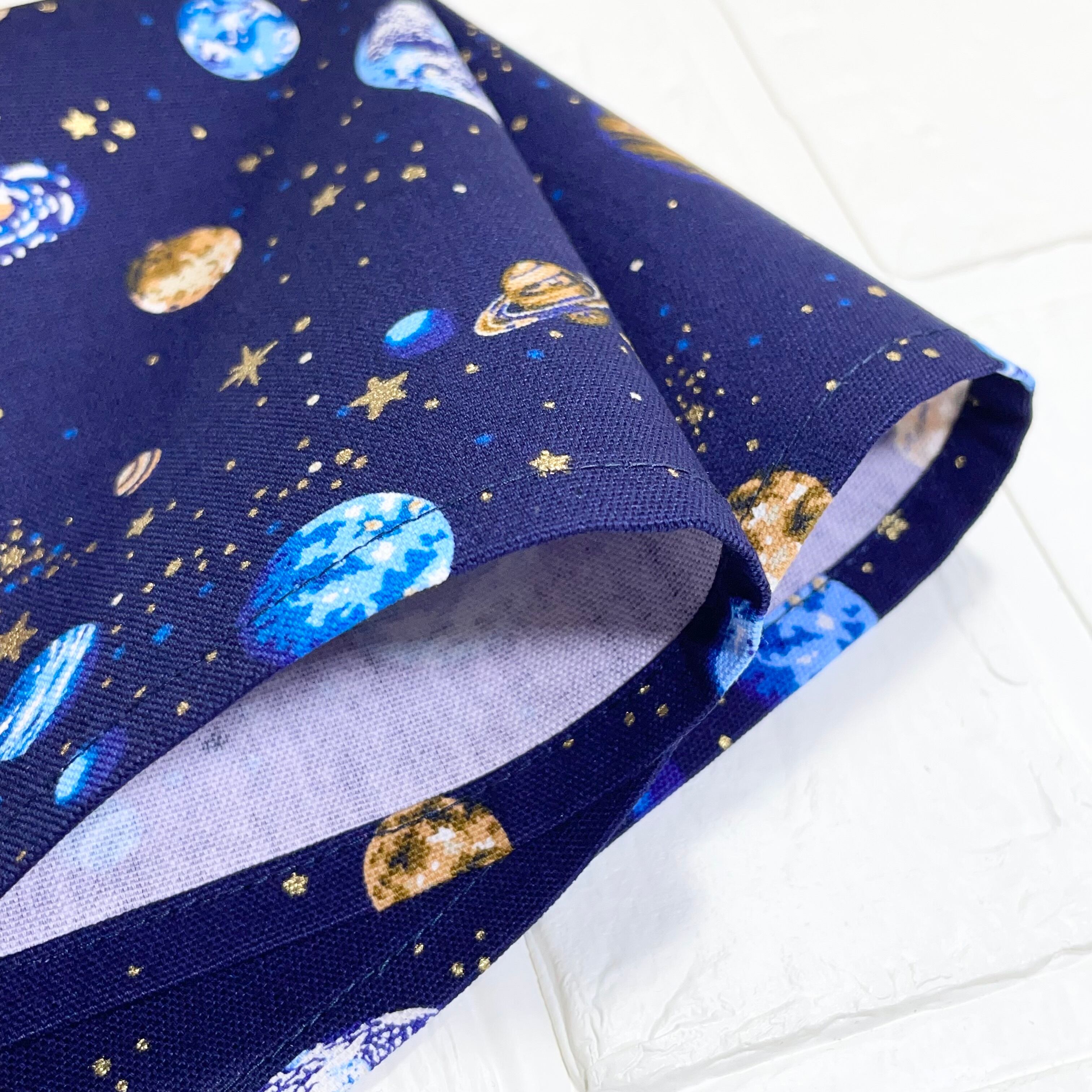 ブラウンの惑星柄が美しく印刷されたデザインは、落ち着いた雰囲気の中に遊び心を演出する一品です。