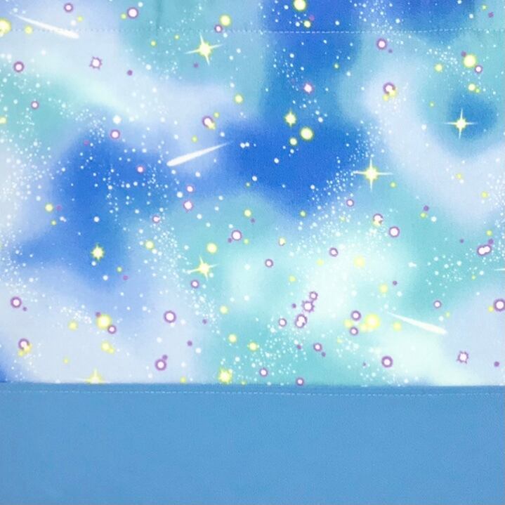 ライトブルーに包まれた美しい銀河の風景が広がるデザインは、落ち着いた雰囲気を演出する一品です。