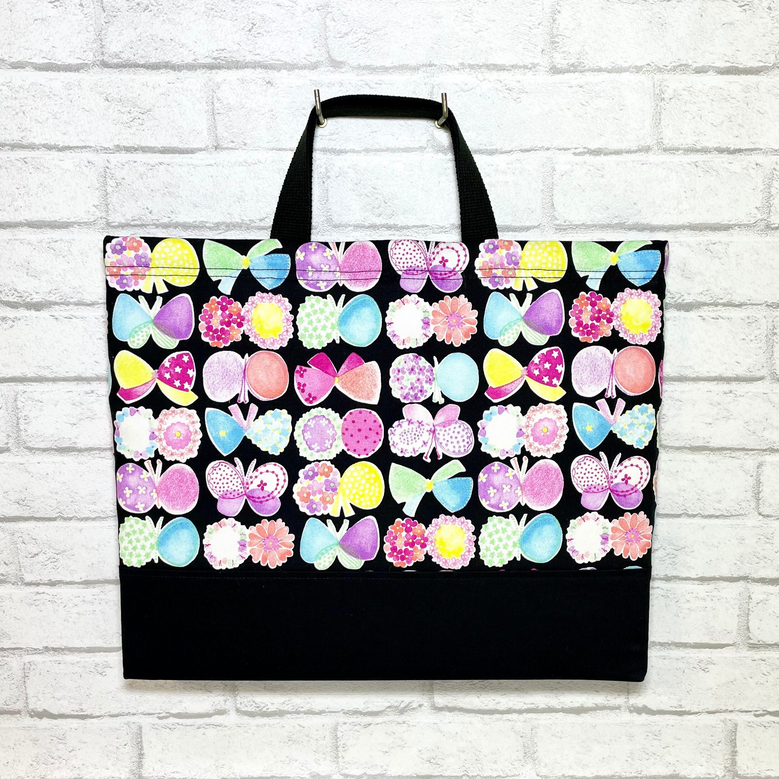 カラフル(BK)×黒 レッスンバッグ40×30×4cm