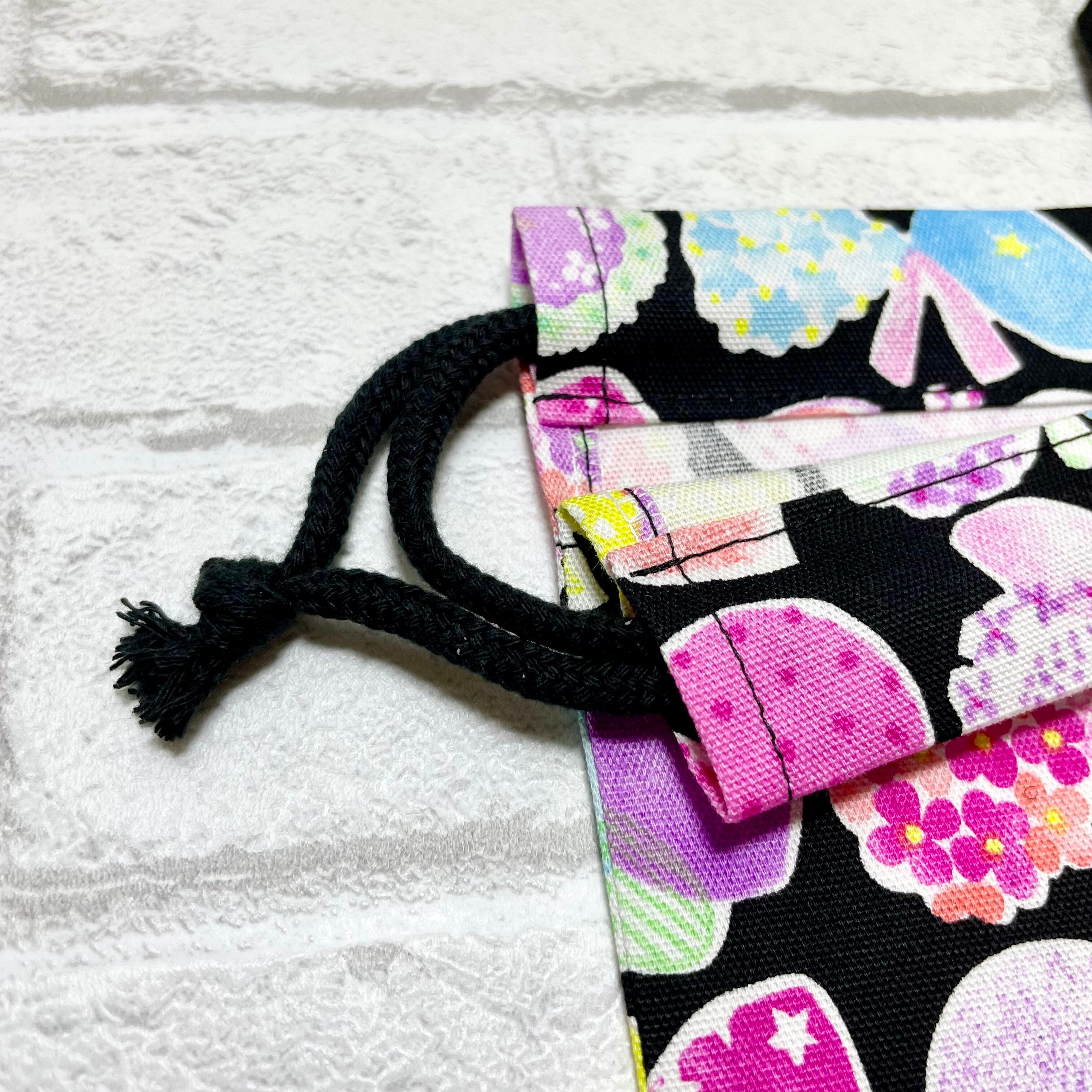ブラックとカラフルなデザインの美しいコントラストが、お道具袋としての機能を高める一品です。