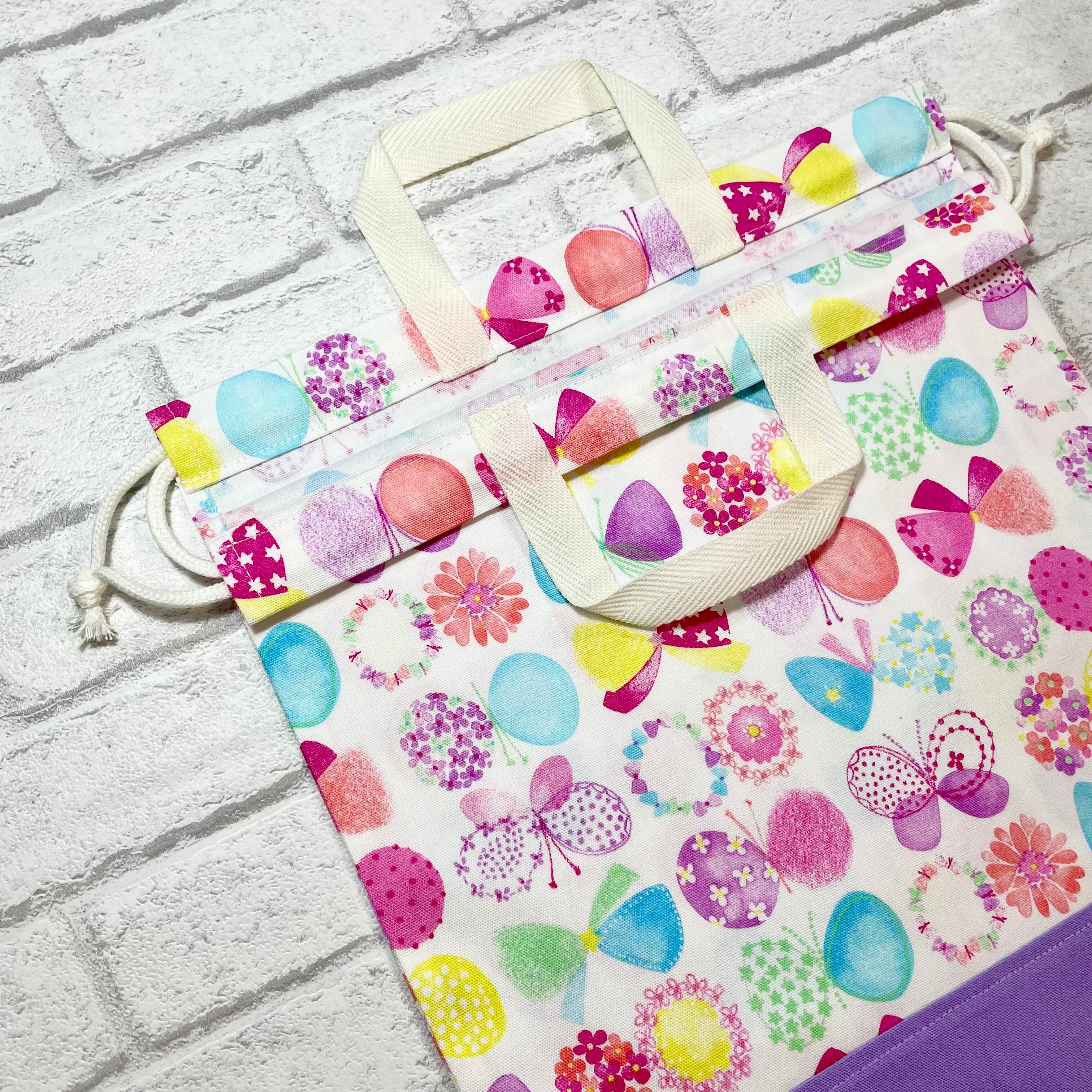 カラフル(WH)×ラベンダー 持ち手付き体操着袋38×30cm