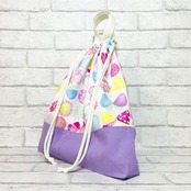 ホワイトを基調にしたカラフルなデザインにラベンダーのアクセントが加わった、目を引くお道具袋です。