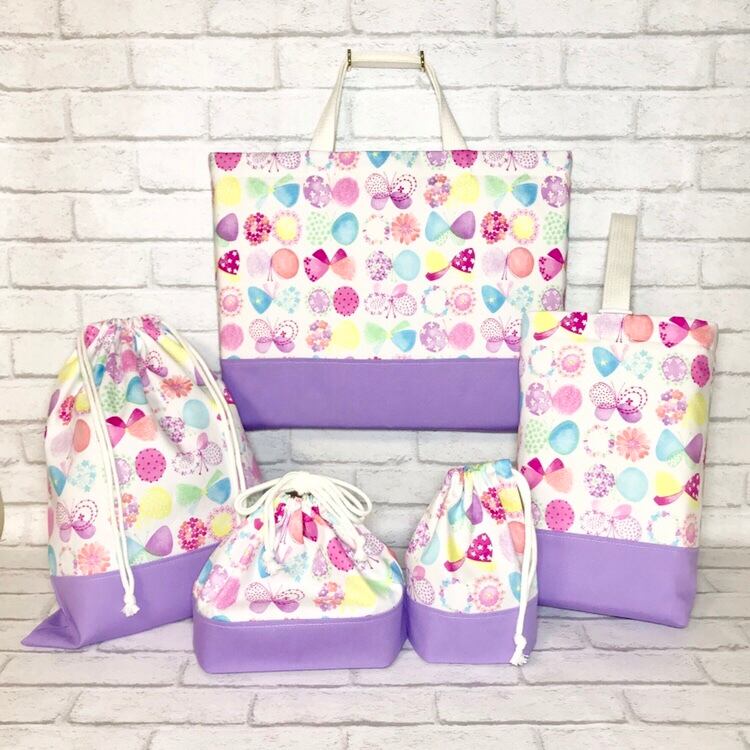 カラフル(WH)×ラベンダー コップ袋18×16×8cm