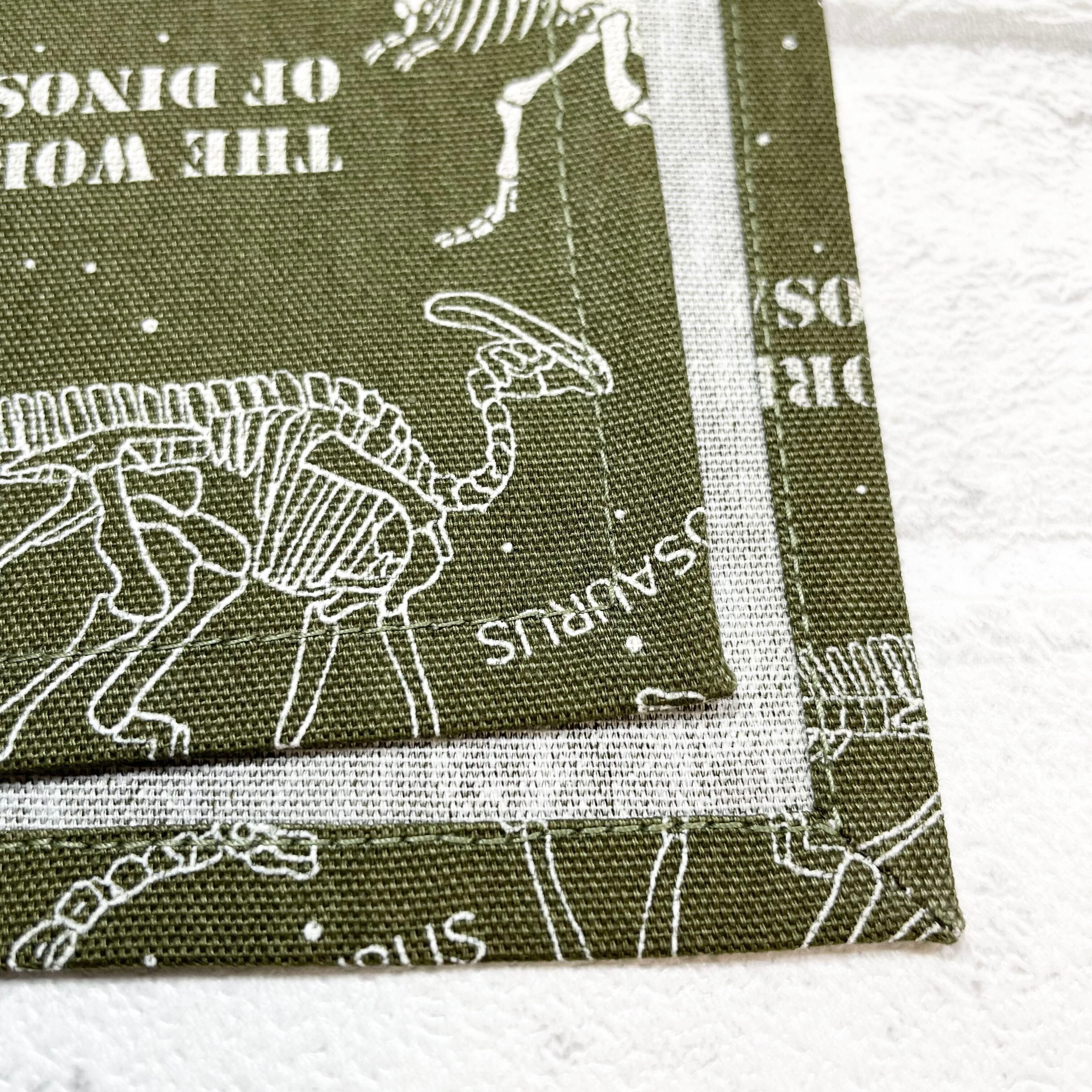 カーキを基調にした化石柄が施された、目を引くランチョンマットです。