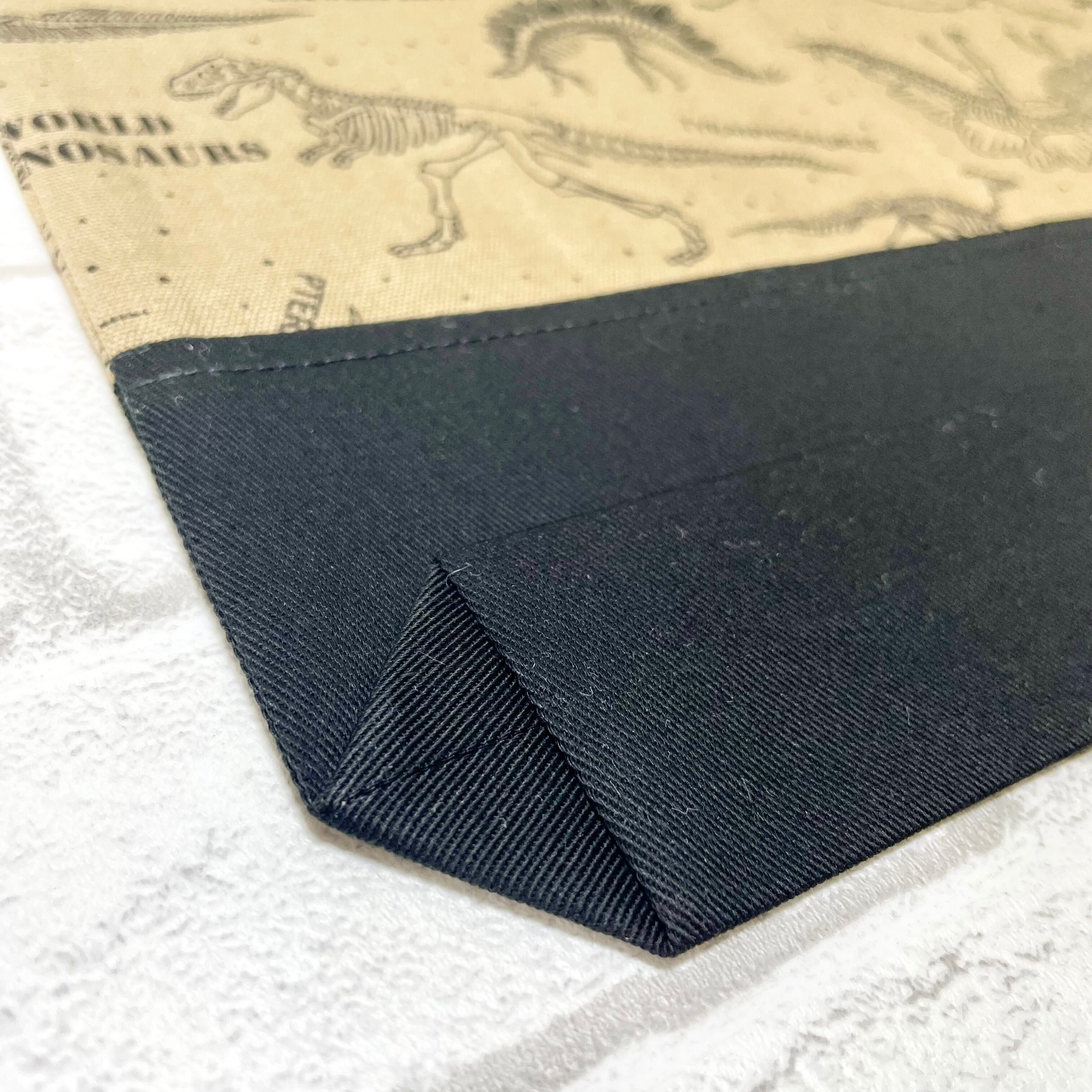 ベージュを基調にした化石柄に黒があしらわれた、目を引くお道具袋です。