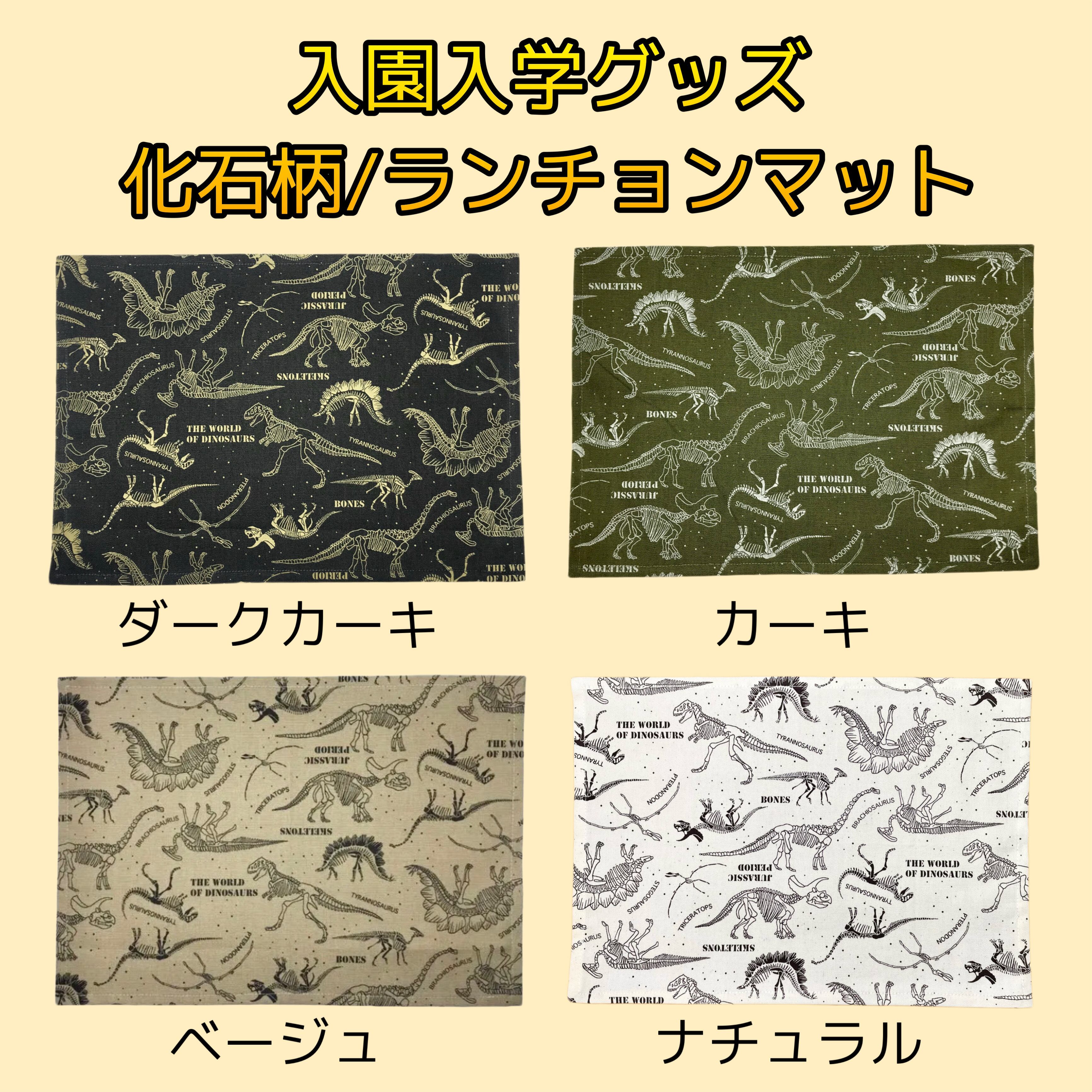 ベージュを基調にした化石柄があしらわれた、目を引くランチョンマットです。