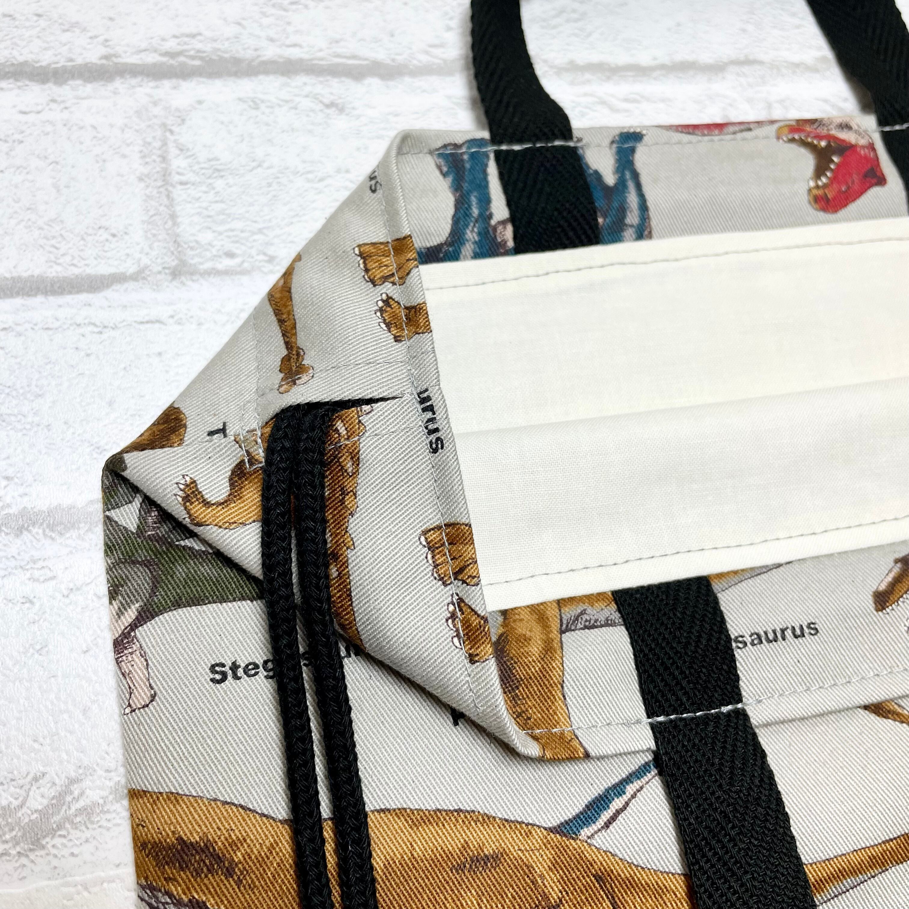 恐竜(グレー)×黒 ナップサック(裏地付き)38×30cm