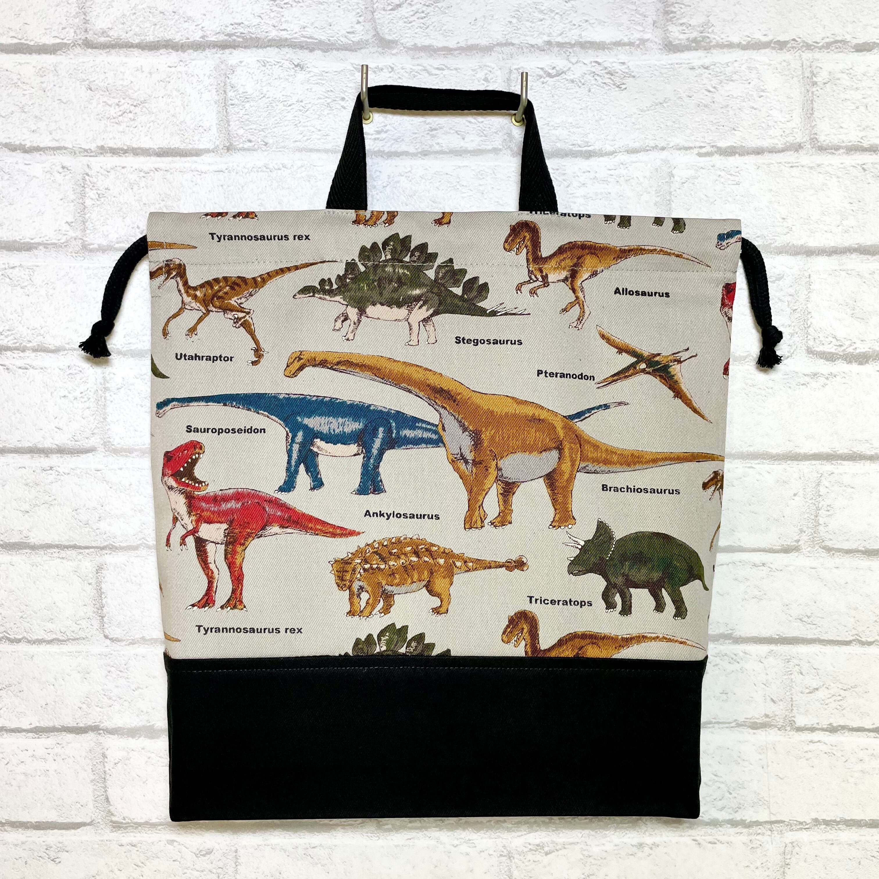 恐竜(グレー)×黒 お道具袋30×30×4cm