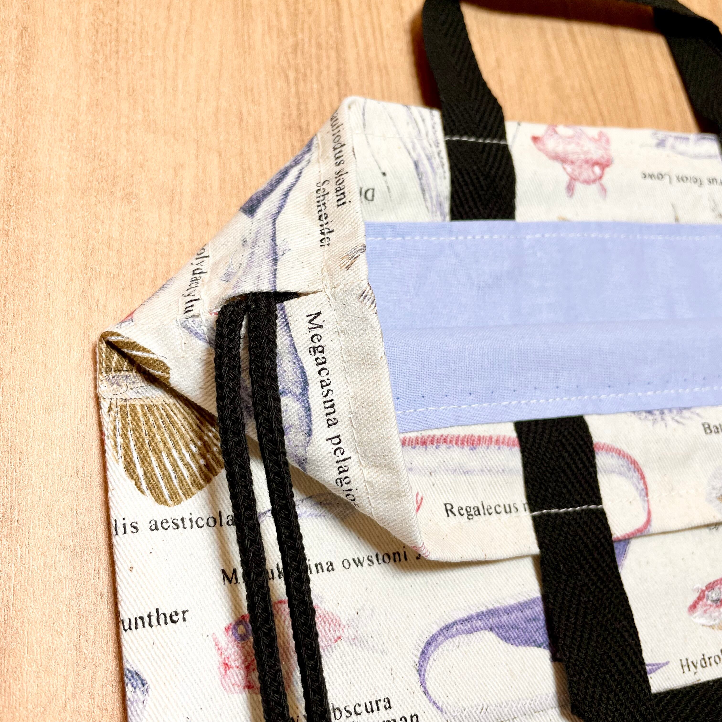 深海魚(生成り)×ストライプ ナップサック(裏地付き)38×30cm