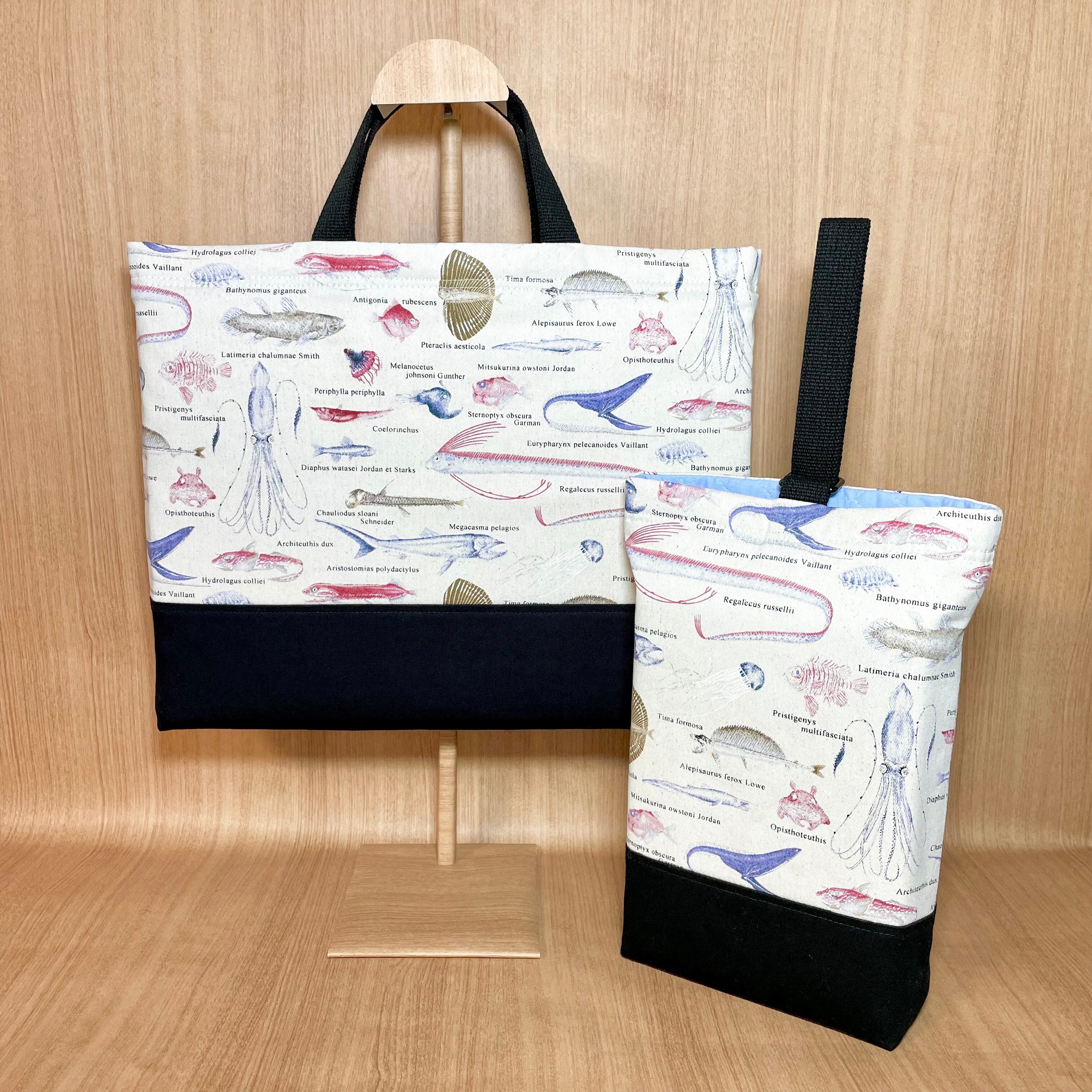 深海魚(生成り)×黒 上履き入れ28×22×6cm